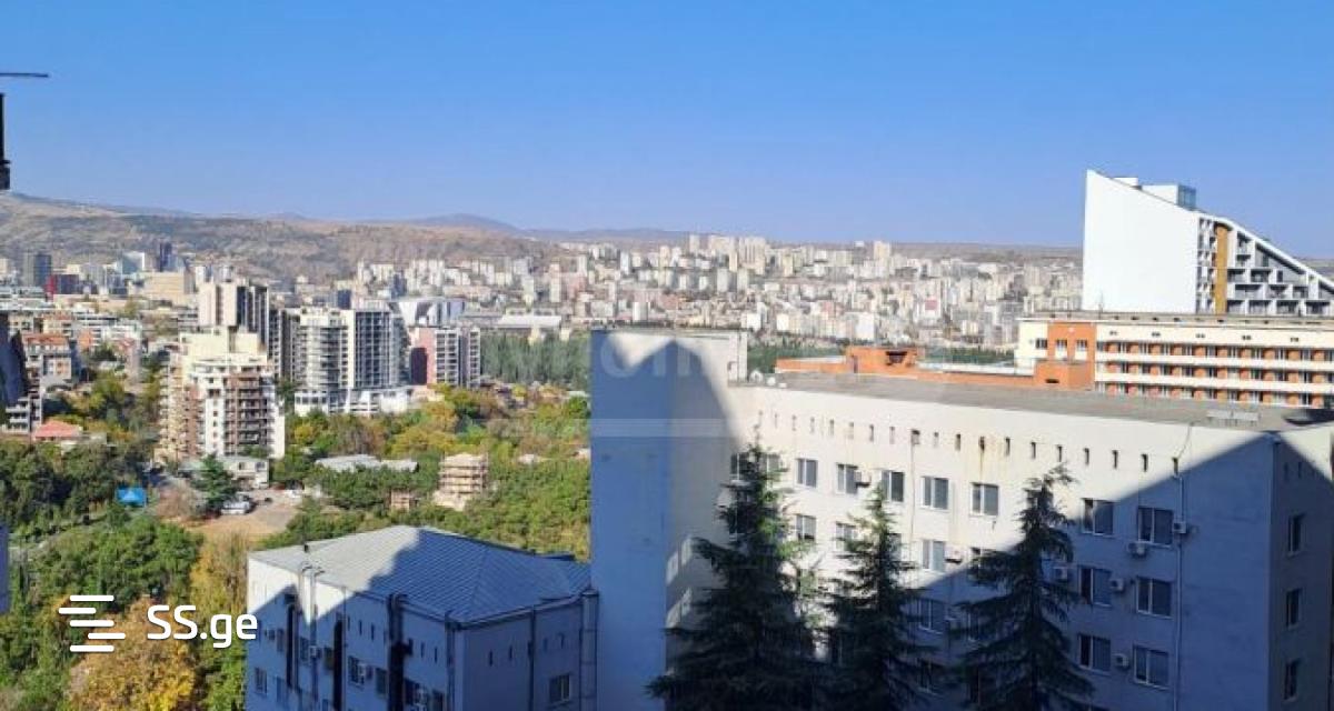იყიდება ვაკეში, ი. ჭავჭავაძის გამზ. 83ში მდებარე 'ვაკე პალასის' საცხოვრებელ კომპლექსში, ეკოლოგიურ და მყუდრო გარემოში, სტუდიოს ტიპის 100 კვ.მ. ბინა. საცხოვრებელი ფართი გარემონტებულია უმაღლესი ხარისხის ევროსტანდარტით: ოთახი დაფარულია გერმანული წარმოების ლაკირებული კოპიტის პარკეტით, ხოლო სამზარეულოში და შემოსასვლელში სადა ფერის ესპანური წარმოების კერამოგრანიტია დაგებული. ოთახში არის მარმარილოთი მოპირკეთებული მუშა ბუხარი და მძლავრი კონდიციონერი. სამზარეულოს გარნიტური და მასიური ჩაშენებული კარადები ავსტრიული მდფის მასალებისგანაა დამზადებული. აბაზანატუალეტი აღჭურვილია გაბარიტული ზომის ჩაშენებული დუშკაბინით Villeroy & Bochისა და Groheს ორიგინალური სატექნიკით.ოთახი და სამზარეულო უყურებს ნუცუბიძის ფერდობს, ლისის დასახლებას და წყნეთის გზატკეცილს.• უდუალოდ კორპუსის წინ მდებარეობს დიდი კეთილმოწყობილი ეზო საბავშვო სასრიალოებით, საქანელებით და სავარჯიშო ტრენაჟორებით. • პირველ სართულზე მუშაობს SPARის სუპერმარკეტი და ხილბოსტანის მაღაზია.• საცხ. კომპლექსის მიმდებარე ტერიტორია