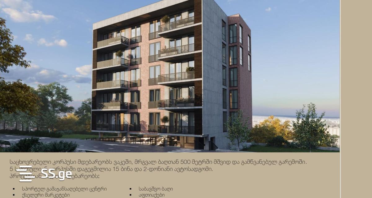 საცხოვრებელი კორპუსი მდებარეობს ვაკეში, მრგვალ ბაღთან 500 მეტრში მშვიდ და გამწვანებულ გარემოში. 5 სართულიან კორპუსში დაგეგმილია 15 ბინა და 2-დონიანი ავტოსადგომი. პროექტთან ახლოს მდებარეობს:▪ სპორტულ გამაჯანსაღებელი ცენტრი ▪ ქსელური მარკეტები▪ კვების ობიექტები▪ საბავშვო ბაღი▪ აფთიაქები▪ სასწავლო ცენტიბინები ბარდება თეთრი კარკასის მდგომარეობით:• შესასვლელი რკინის კარი• ალუმინის კარ-ფანჯარა• გალესილი შიდა ტიხრები• მოჭიმული იატაკი• მოპირკეთებული ფასადი• კომუნიკაციები მიყვანილი ბინამდე• მოპირკეთებული აივანიპროექტი დასრულდება2024 წლის ივნისში