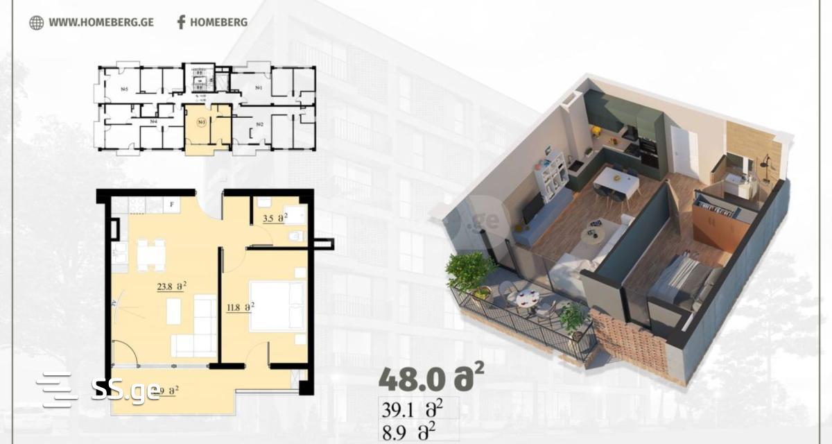 იყიდება 2 ოთახიანი ბინა, ერთი საძინებლით, გელოვანის გამზირზე დებარე აგროჰაბის უკან