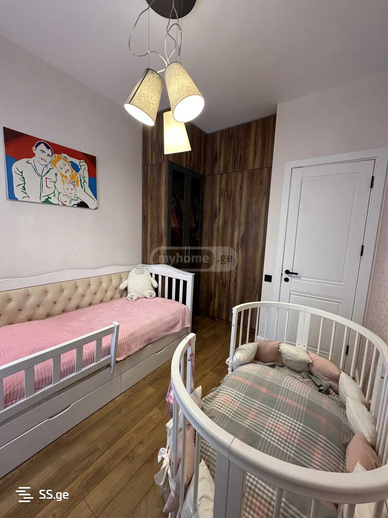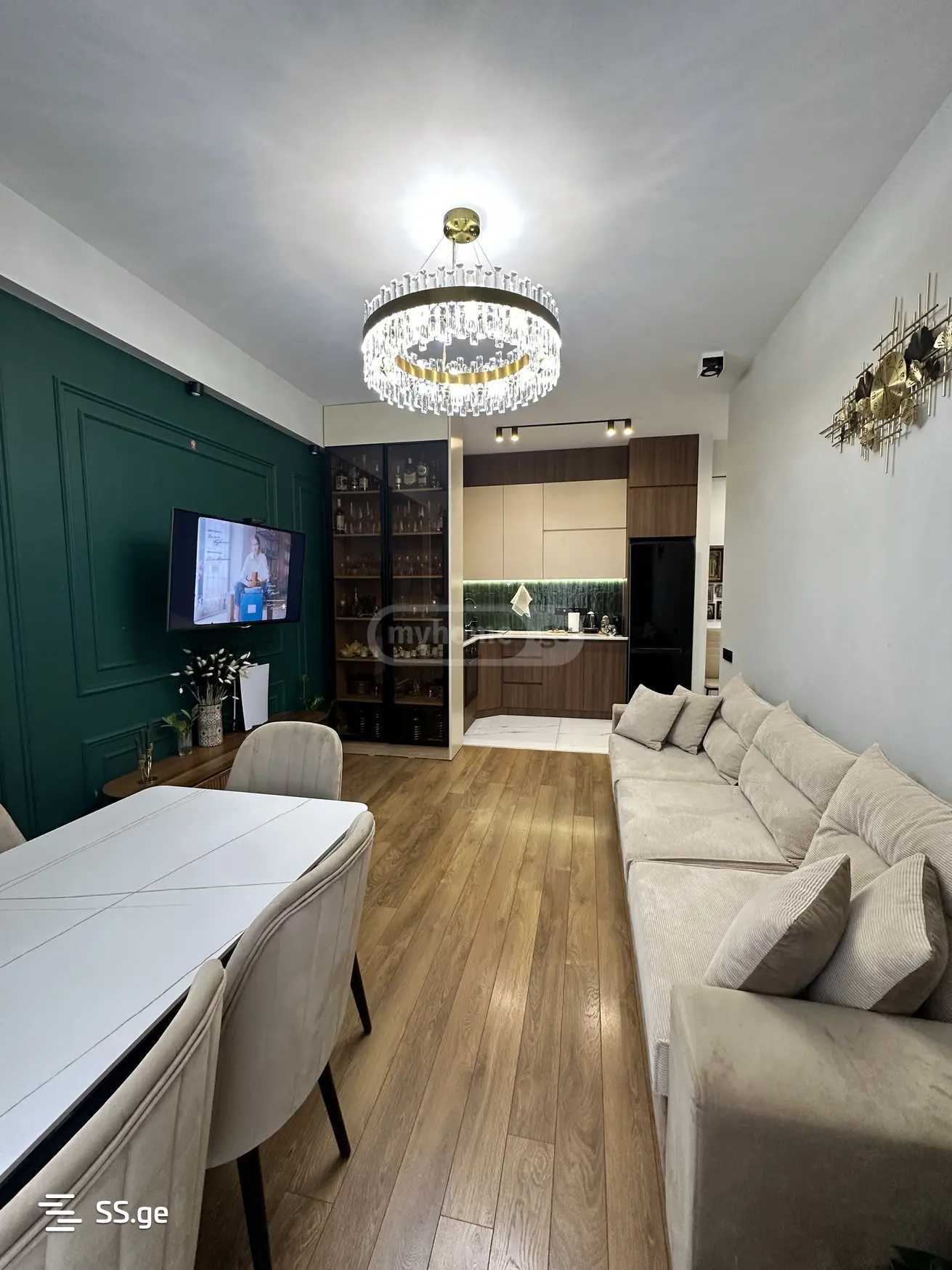 ბინას ააქვს 2 იზოლირებული საძინებელი და მისაღები სტუდიო, ბინა არის გარემონტებული უმაღლესი ხარისხის მასალებით.ბინაში რჩება ყველაფერი