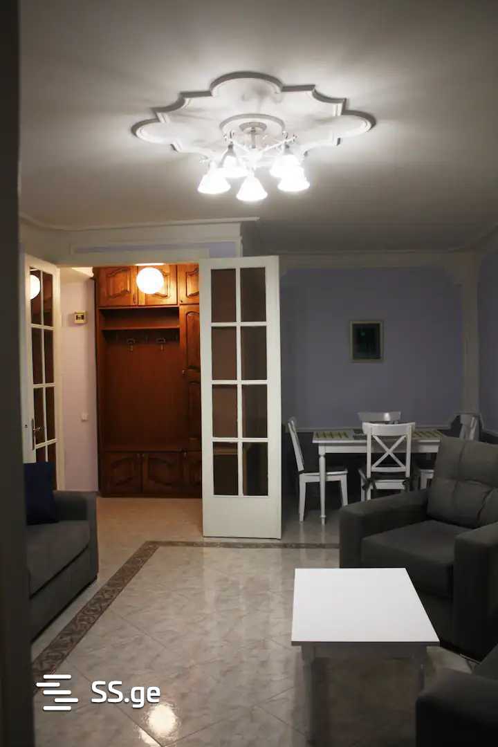 იყიდება ბინა ქალაქის ცენტრში, ჩუღურეთის რაიონში. ბინას აქვს ორი საძინებელი, დიდი მისაღები ოთახი სასადილო ზონით, სამზარეულო, ცალკე აბაზანა და ფართო აივანი რომელიც იყურება ეზოში, შესაბამისად ქუჩის ხმაური არ შეგაწუხებთ. ბინაში გაკეთბულია ძველი რემონტი, არის ყველა საჭირო ტექნიკა, ავეჯი, ჩაშენებული კარადები, ყველაფერი რჩება მყიდველს. ბინას აქვს ძალიან კარგი ორ ფრთიანი რკინის კარი და კლიტეები. ასევე ეზოში არის პარკინგის ადგილი და საკუჭნაო ბინის ქვეშ. ეზოში დაყენებულია შლაგბაუმი. სახლი არის კულტურული მემკვიდრეობის ძეგლი. შენობაში განთავსებულია კოტე და სოსო წერეთლების მემორიალური სახლ-მუზეუმი