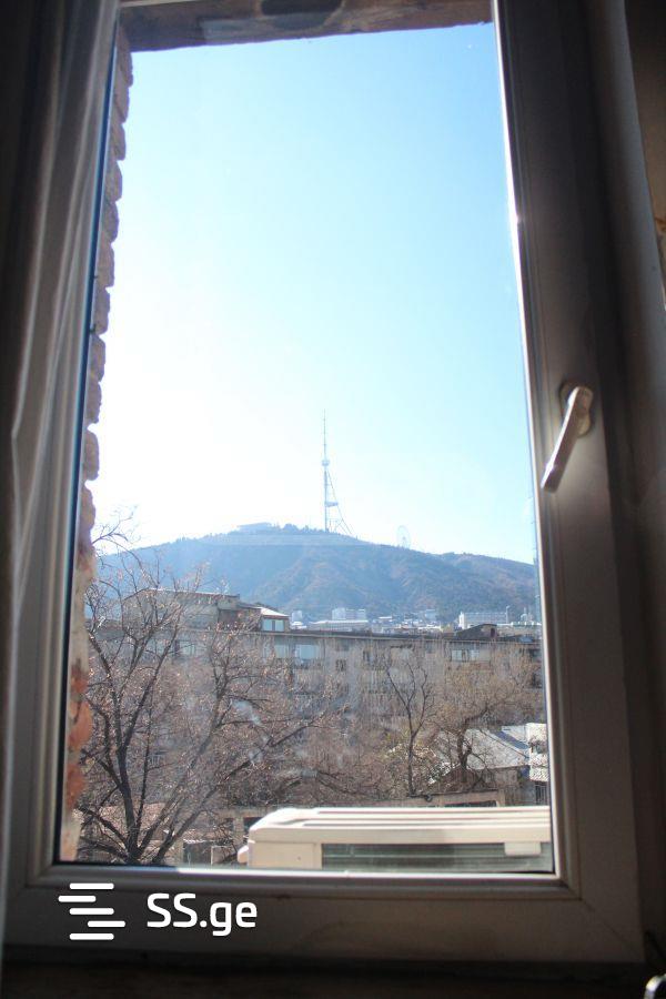 ფანჯრები გადაყურებს მთაწმინდას პანორამული ხედით.