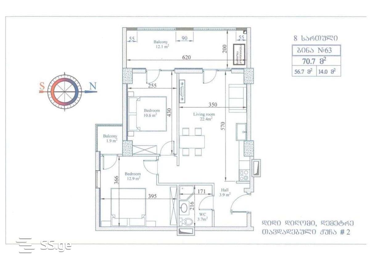 იყიდება 3 ოთახიანი ბინა დიდ დიღომში