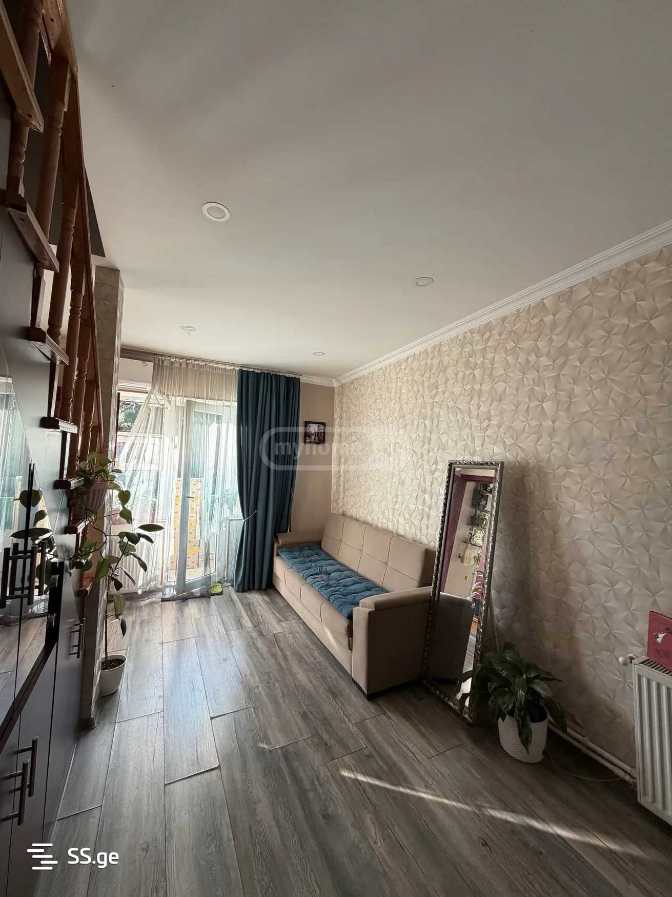 იყიდება ბინა ხუთსართულიანი კორპუსის მეხუთე სართულზე დაშენებით, დუპლექსის ტიპის.