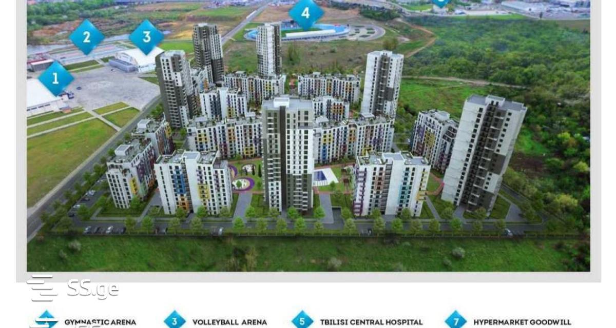 ალბათ საუკეთესო ტერიტორია მაღალი ხარისხის მშენებლობით. კომპლექსში შენდება შემოღობილი, დაცული ტერიტორია მრავალი სპორტული მოედნით, საცურაო აუზებით, სკოლა და საბავშვო ბაღი. შენობის მშენებლობა დასრულებულია, შიდა სამუშაოები მიმდინარეობს. შეგიძლიათ რემონტის დაწყება. ბინის მდგომარეობა შავი კარკასი