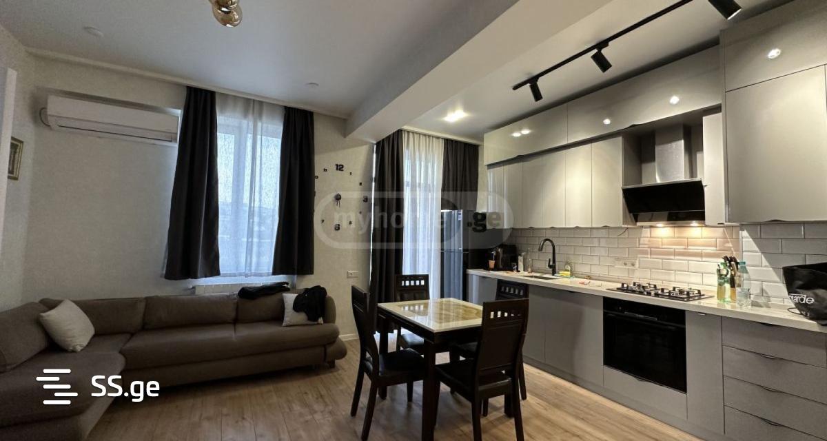 3 ოთახიანი სტუდიოს ტიპის ბინა. ახალი აშენებული კორპუსი. ჩაშენებული ჭურჭლის სარეცხი მანქანით, ღუმელით. რჩება ძირითადი ტექნიკა და ავეჯი. ბინას აქვს 3 აივანი