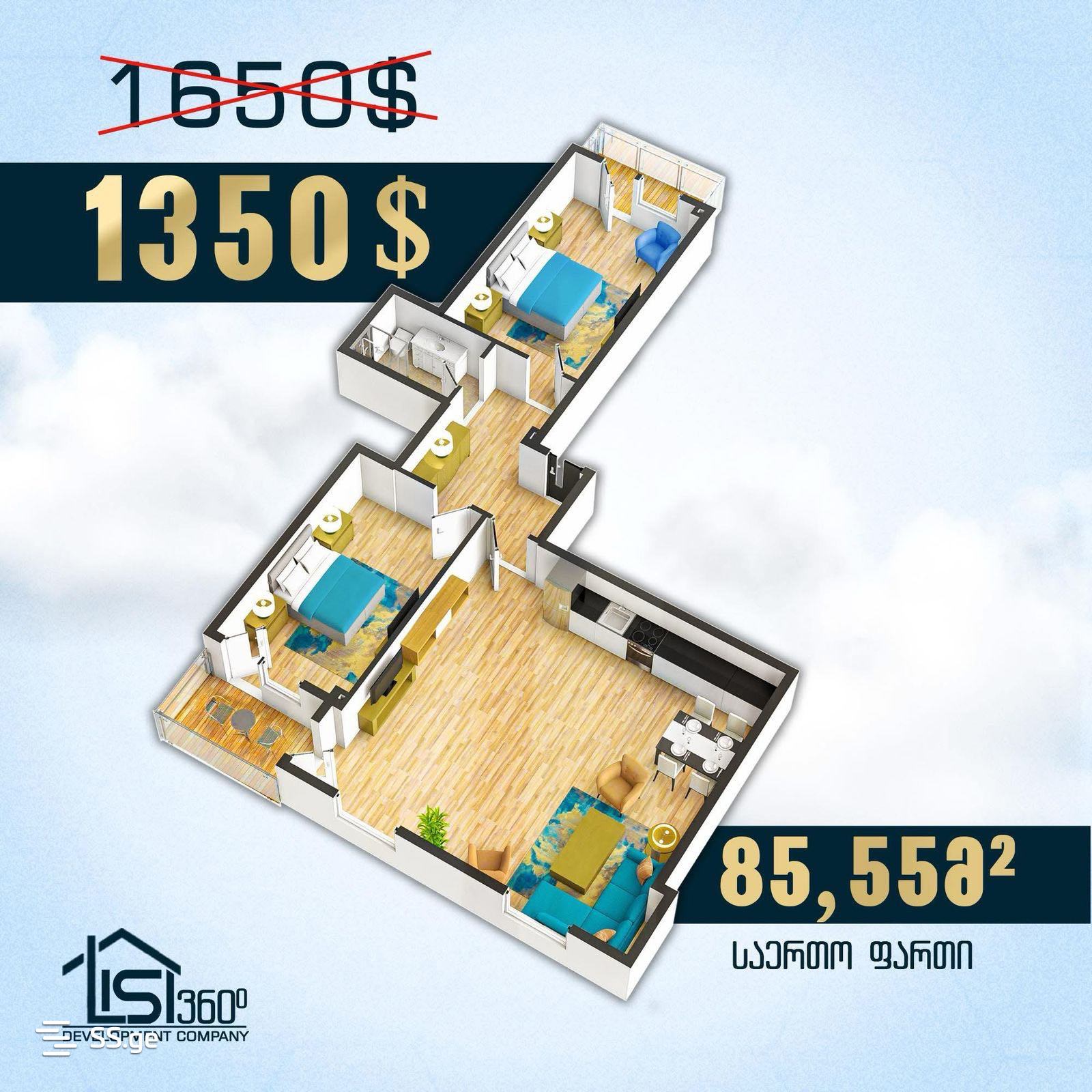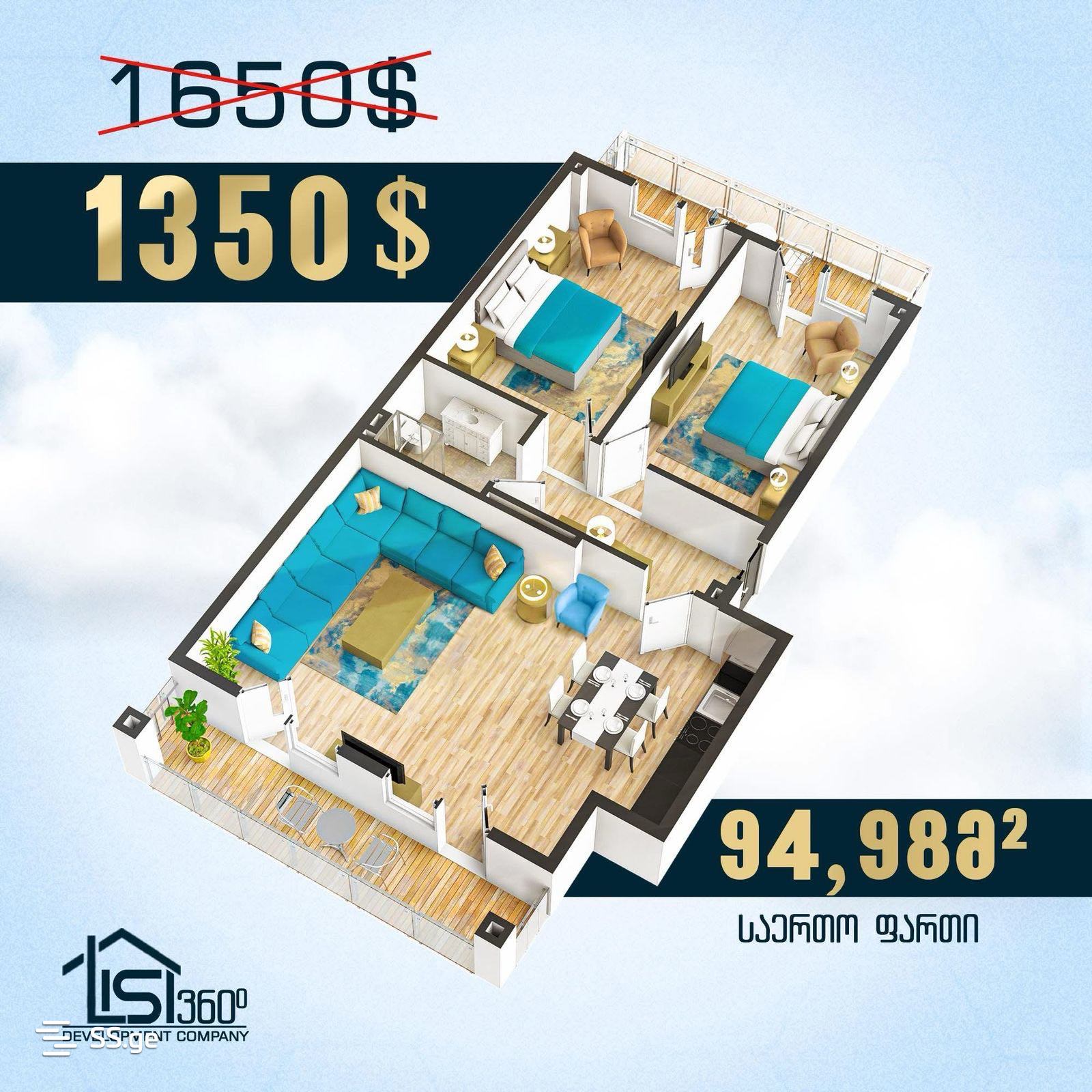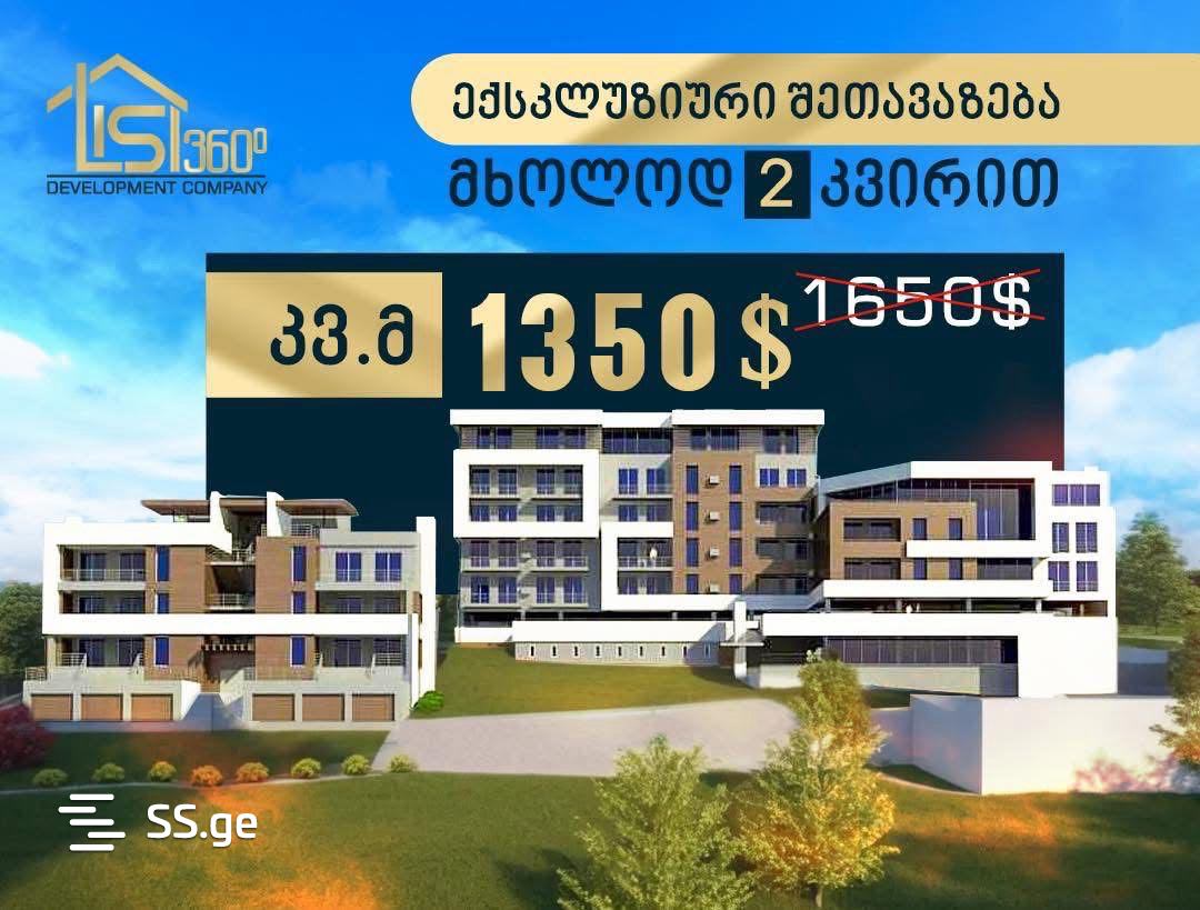 აქციის ფარგლებში კვ.მ ღირებულება მწვანე კარკასის მდგომარეობით 1,650$-ის ნაცვლად 1,350$