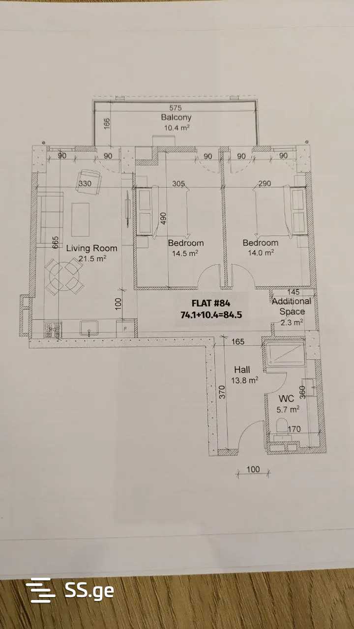 84,5 კვადრატული მეტრი პროექტი კომპანია W2.ge -ისგან (თეთრი კვადრატი)