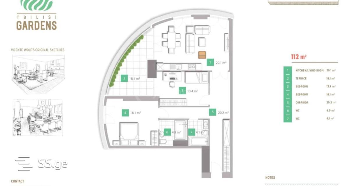თბილისი გარდენსის მეორე თაუერში იყიდება 112 კვადრატი, 2 საძინებლით, ვაჟა ფშაველას მხარეს