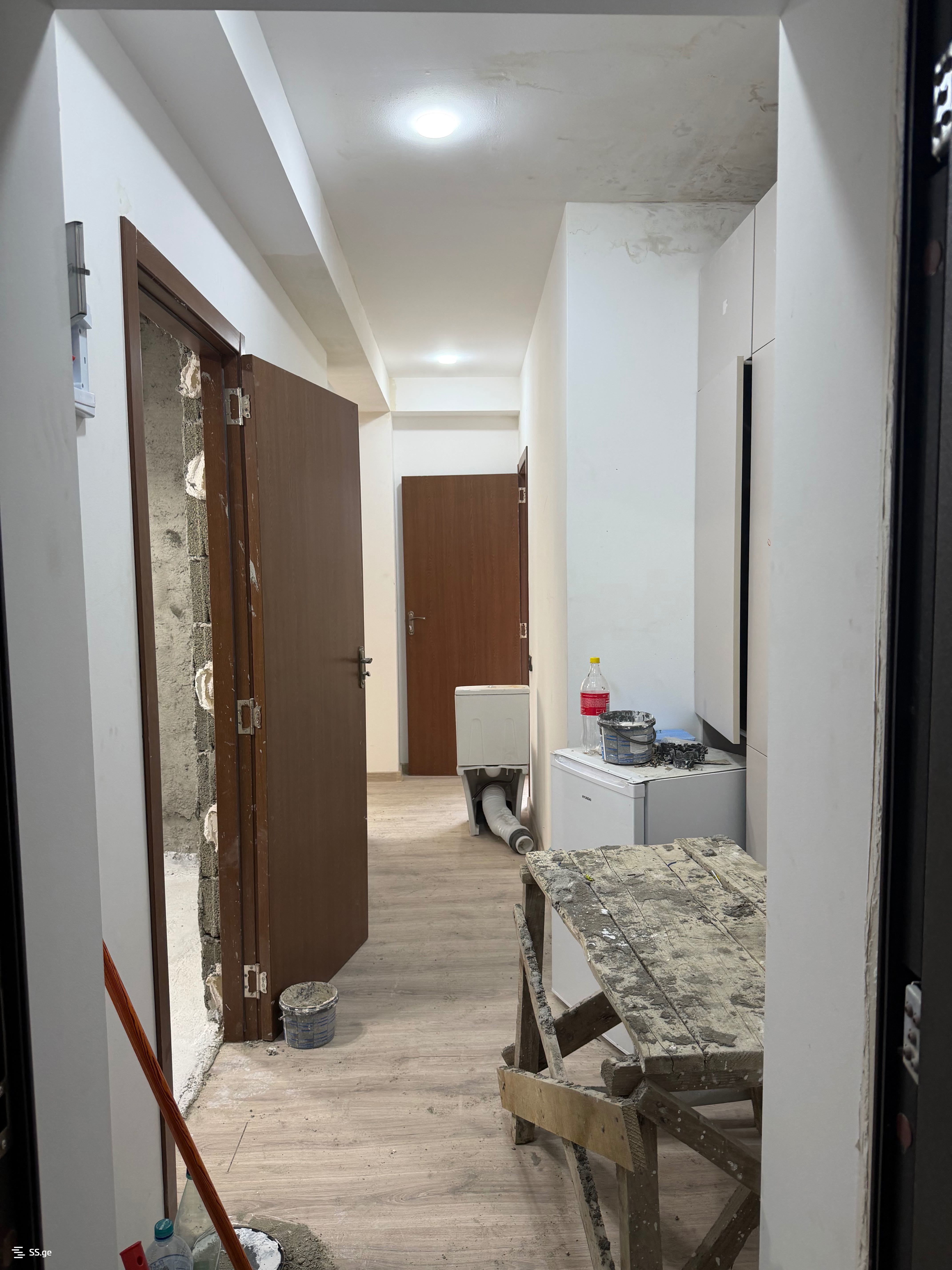 კორპუსი არის ახალ აშენებული. მეზობლები აკეთებენ რემონტებს. ბინა არის გასარემონტებელი, აბაზანა არის გამზადებული ფილის მისაკვრელად, გაყვანილობა და ელექტროობა გაკეთებულია