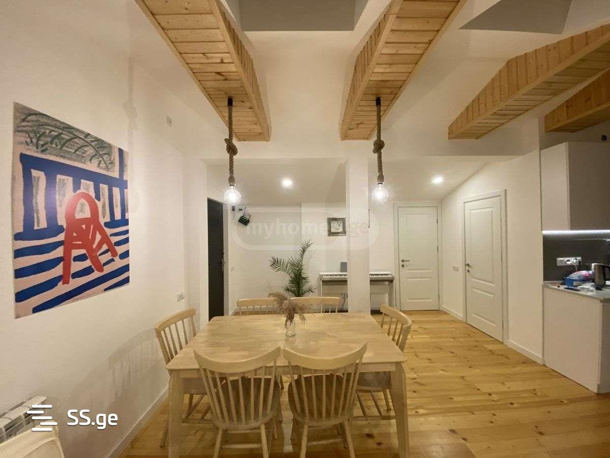 იყიდება 88 კვ/მ ახალი გარემონტებული სხვენის ტიპის ბინა, სრულად უზრუნველყოფილი ავეჯით და ტეკნიკით, ტერასის პერსპექტივით!