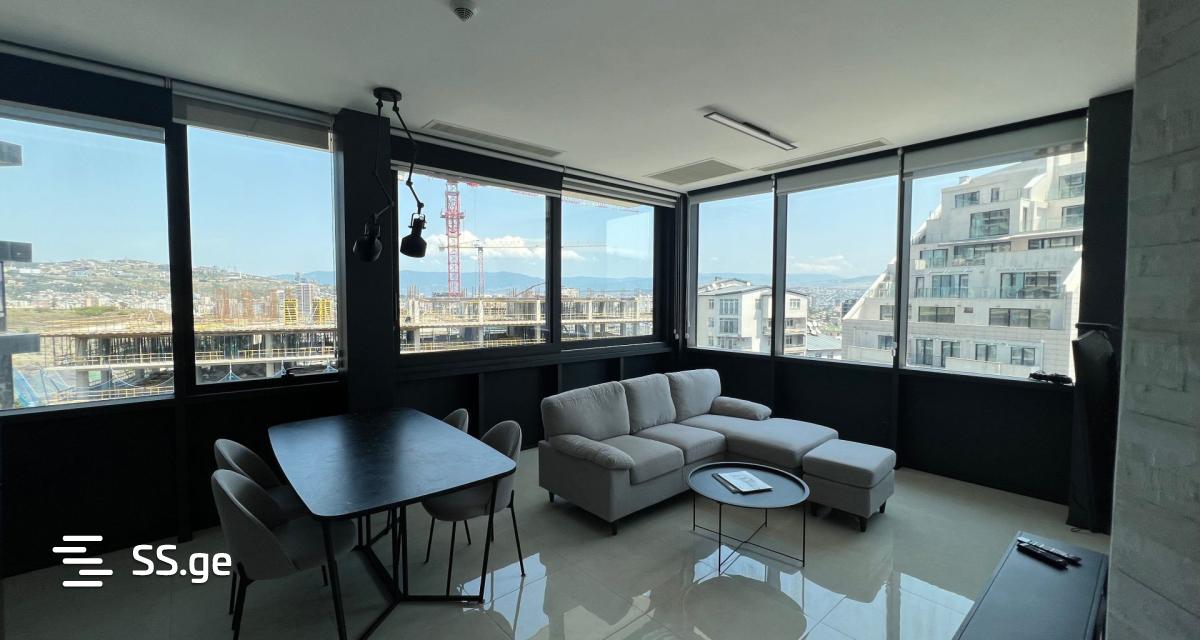 იყიდება ბინა აქსის თაუერში Axis Tower. ბინა მდებარეობს ჭავჭავაძის 37მ ნომერში, (აგროჰაბის შენობაში). ბინა აღჭურვილია ცხოვრებისთვის საჭირო ტექნიკით და ავეჯით. ბინაში დაგხვდებათ ტანსაცმლისა სარეცხი და საშრობი მანქანები, ჭურჭლის სარეცხი მანქანა, ღუმელი, მაცივარი და სხვა. ჯამში 3 ოთახი: მისაღები, 1 ძირითადი საძინებელი, 1 საძინებელი, რომელიც ნახევრად კაბინეტია და აქვს გასაშლელი დივანი(შესაძლებელია საწოლის ჩადგმა). ბინას აქვს 2 სველი წერტილი აქედან ერთი არის აბაზანატუალეტი, მეორე მხოლოდ ტუალეტი. შენობაში განთავსებულია აქსისის ველნეს ცენტრი, რომელშიც დაგხვდებათ ტრენაჟორები და აუზი.