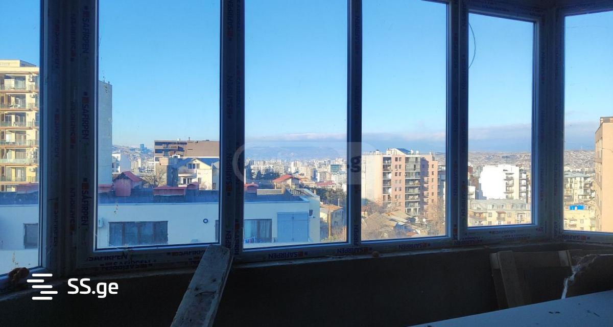კედლები გაკეთებულია და ელექტროობა...გიფსოც ამოზიდულია ჭერისთვის...აივნით და ძალიან კარგი ხედით