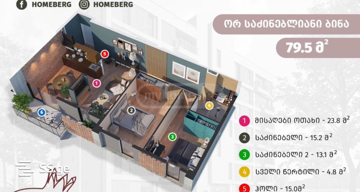 79.5 მ²ოთახი