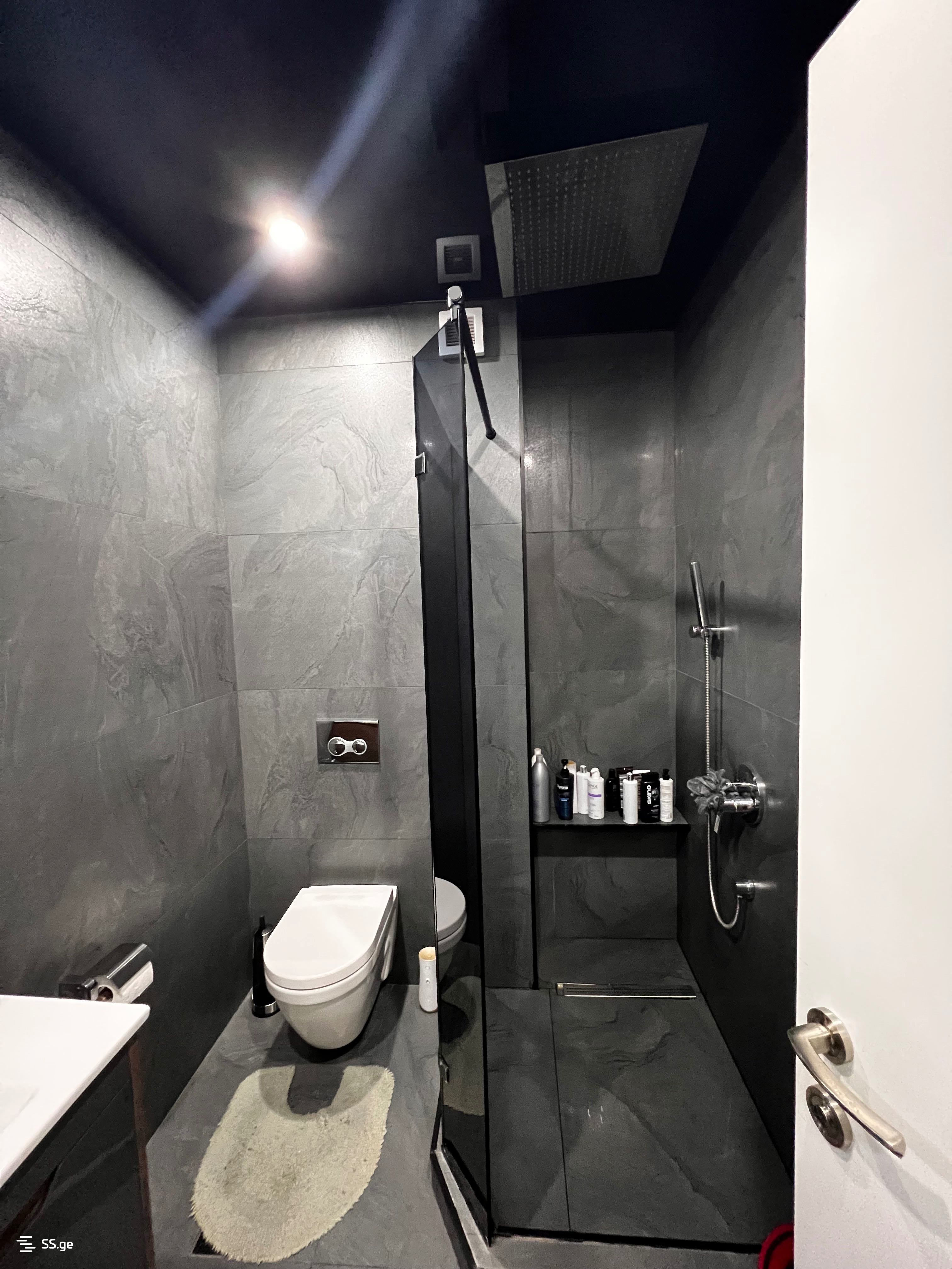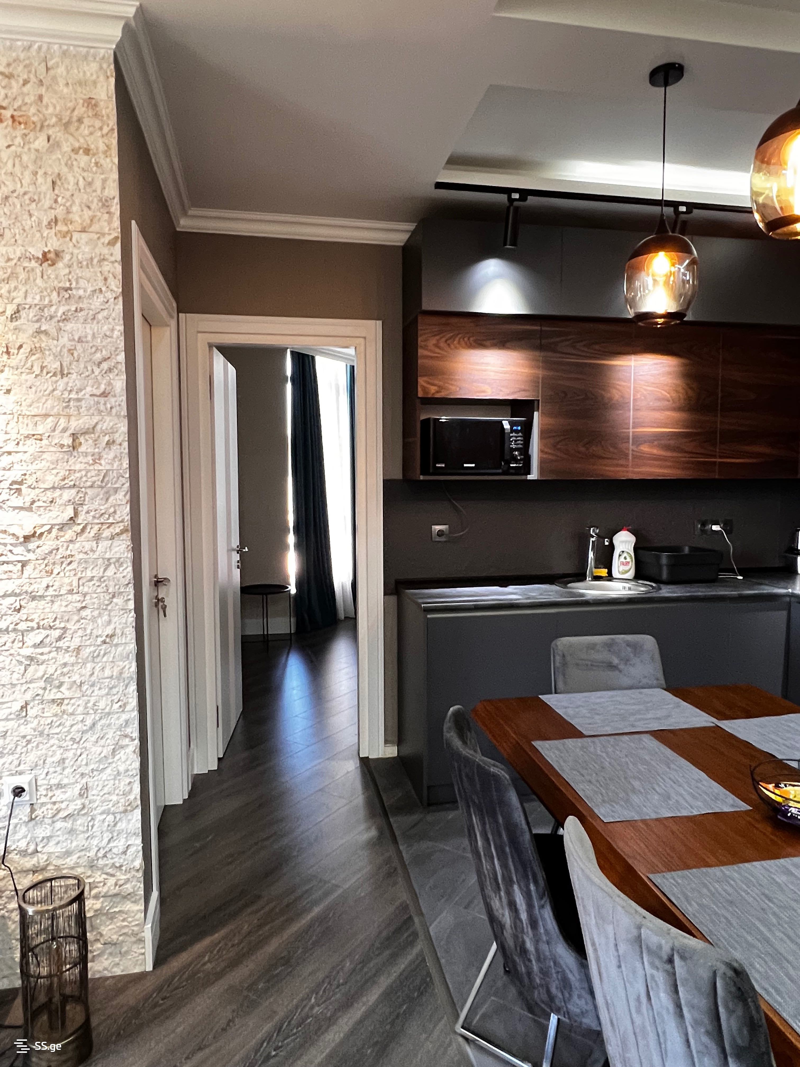 ბინას აქვს ორი ნათელი საძინებელი და დიდი მისაღები. ინტერიერი გაკეთებულია დიზაინერის მიერ.