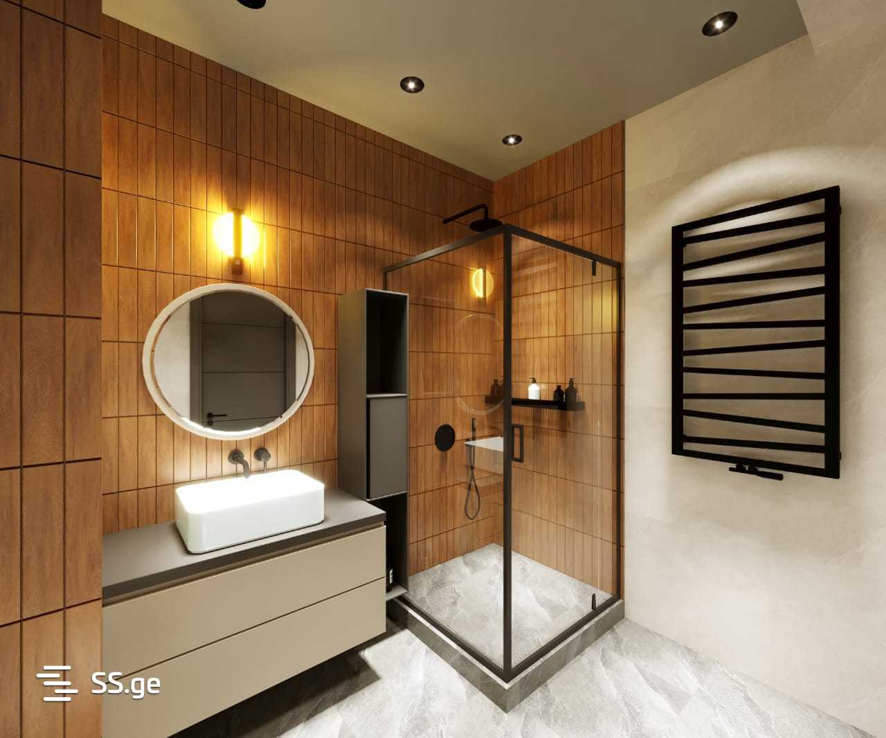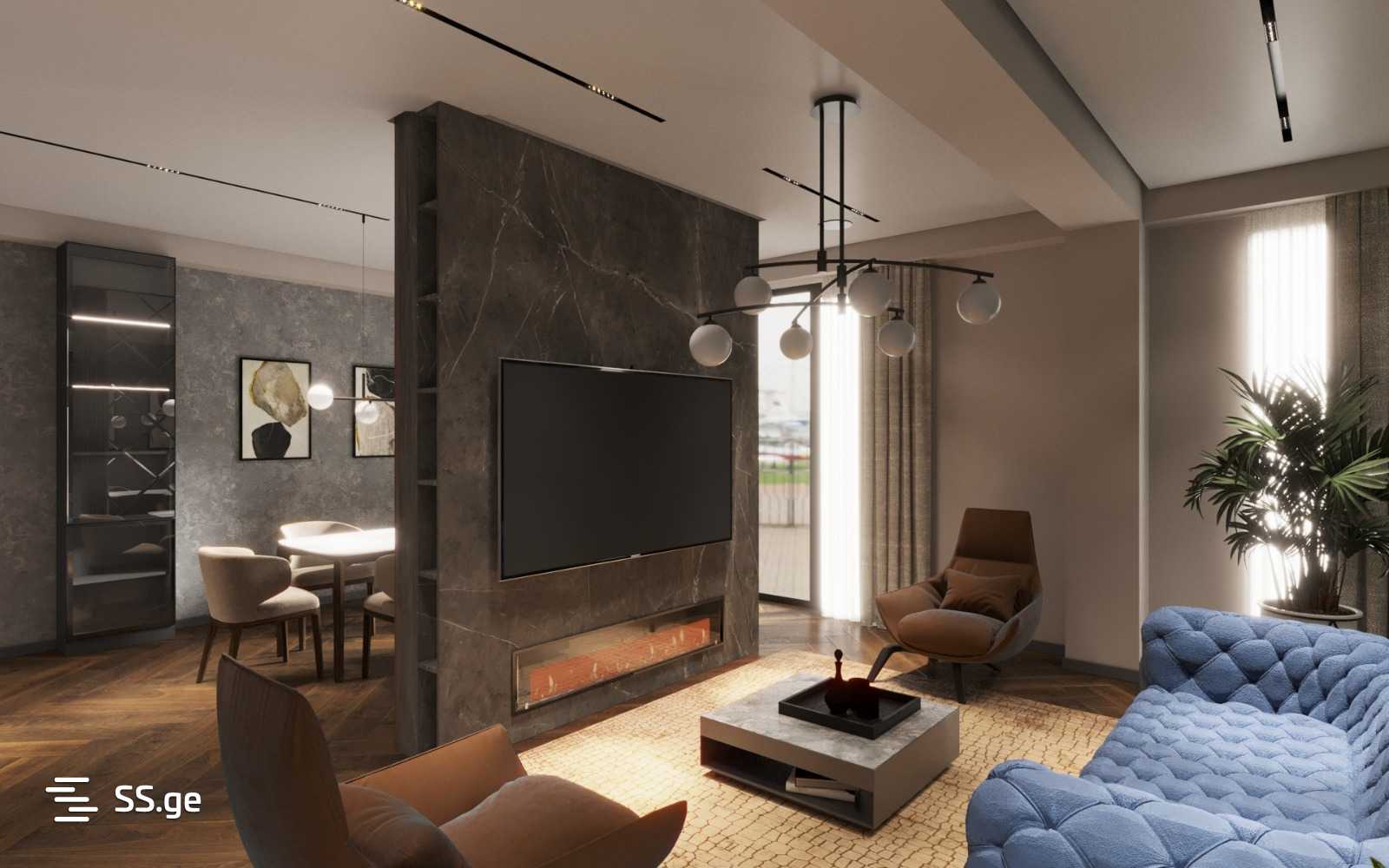 იატაკის გათბობის სისტემა და ელექტროობის გაყვანილობა დამონტაჟებულია მთელი ბინის ფართზე