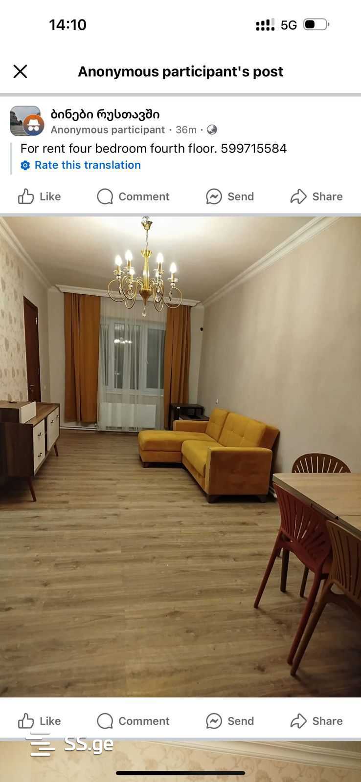 იყიდება 4 ოთახიანი ბინა რუსთავში