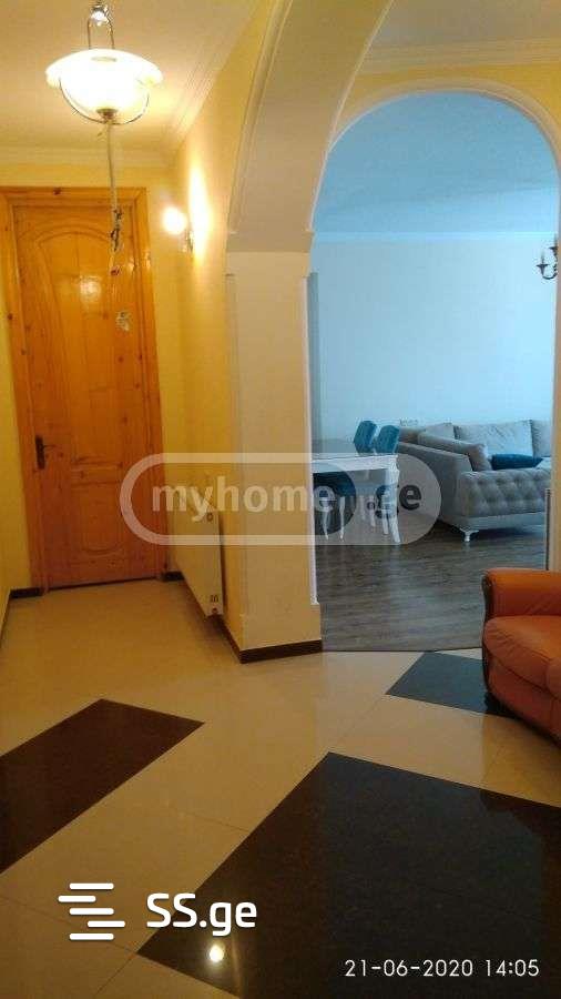 იყიდება 140 კვ.მ 4 ოთახიანი კუთხის ბინა წერეთლის გამზირზე, 2 სველი წერტილით, კონდენციონერით, სამზარეულოში ჩაშენებული ქურებით და 24 პერსონაზე გათვლილი ჭურჭლის სარეცხი მანქანით, ჯაკუზით, ცენტრალური გათბობით, ორი აივნით, აივანზე ჩაშენებული მეტალოპლასმასის სათავსოთი, ჩაკეტილი ეზოთი, პარკირების ადგილით, სახლის გარშემო მოწყობილი სკვერებით და სტადიონით.