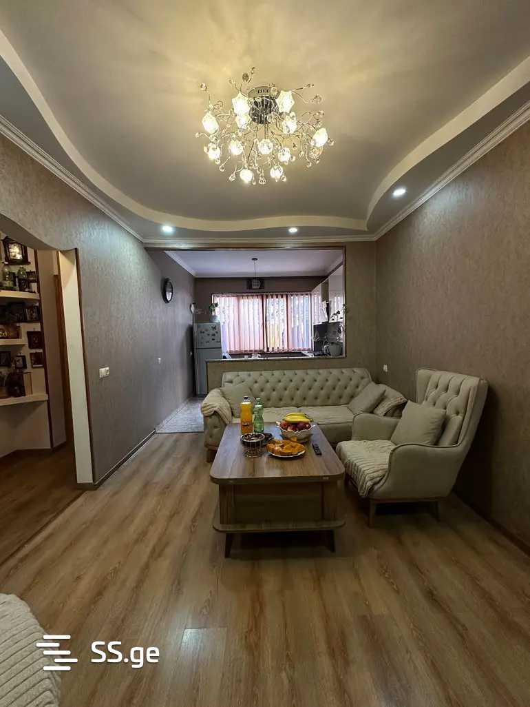 იყიდება ბინა ნაწილობრივ ავეჯით და ტექნიკით, არის ახალი გარემონტებული. არის მაღალი პირველი სართული. მდებარეობს გლდანის პარკთან, გზის პირას. ბინას აქვს სამი სათავსო, სახლში, სარდაფში და ეზოს მხარეს, სამივე არის მოწესრიგებული, რომელსაც ვიყენებთ ნებისმიერი რამის შესანახად. კორპუსს აქვს შლანგბაუმიანი ეზო. ბინას ასევე მოყვება ორი მანქანის გასაჩერებელი ადგილი ეზოში.