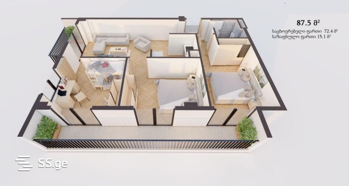 ალფა დეველოპმენტი - გლდანის საცხოვრებელი კომპლექსი ალფა დეველოპმენტის გლდანის საცხოვრებელი კომპლექსი გამოირჩევა კომფორტული, საცხოვრებლად მყუდო ადგილმდებარეობით, სადაც დაგხვდებათ: მშვიდი გარემო, გაშლილი სივრცე, სუფთა ჰაერი, ულამაზესი პანორამული ხედები.საცხოვრებელი კომპლექსი მეტროსადგურ „ახმეტელის თეატრთან“ ახლოს (ტრანსპორტით – 5 წუთის, ფეხით – 15 წუთის სავალზე) მდებარეობს. საცხოვრებელი კომპლექსი შედგება ორი:A და B ბლოკისგან. კომფორტული ბინები იდეალურადაა დაპროექტებული – ყველა ოთახს აქვს ფანჯარა და აივანი.პროექტით გათვალისწინებულია მოპირკეთებული და გამწვანებული ეზო. მობინადრეების განკარგულებაშია როგორც მიწისზედა, ისე მიწისქვეშა ავტოსადგომი.ჩაბარების პირობები: მწვანე კარკასი• შელესილი კედლები• მოჭიმული იატაკი• მეტალოპლასტმასის კარ-ფანჯარა• რკინის შესასვლელი კარი• დაქსელილი კომუნიკაციების წერტილები ბინაში• გათბობის მილები• ოთახში 5 ელ. წერტილი• მოპირკეთებული აივანიპროექტის მშენებლობა დასრულებულია. ბინაში შიდა სარემონტო სამუშაოების დაწყება შესაძლებელია ბინის შეძენისთანავე.
