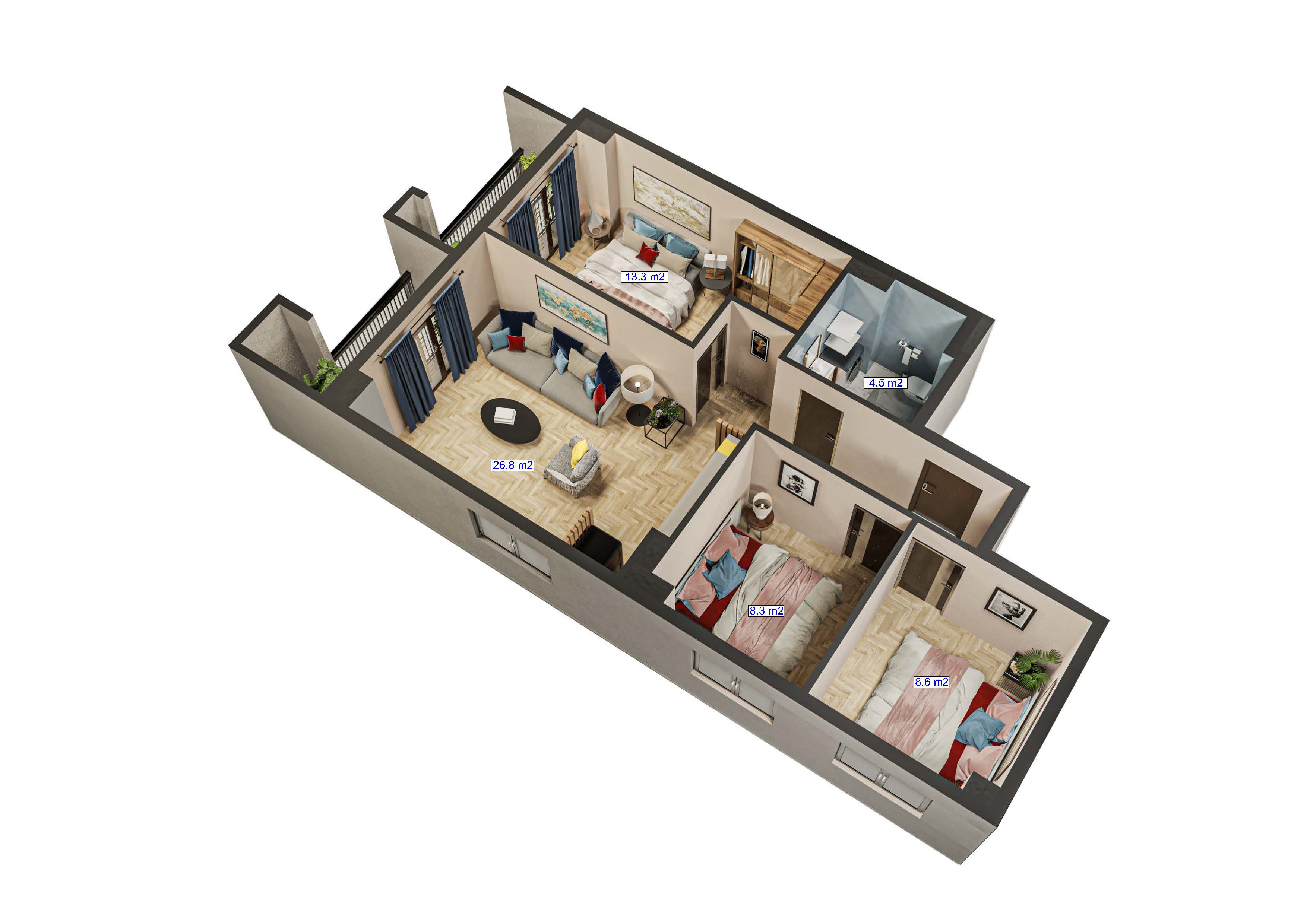54.8 — 73.6 მ²ჭერის სიმაღლე