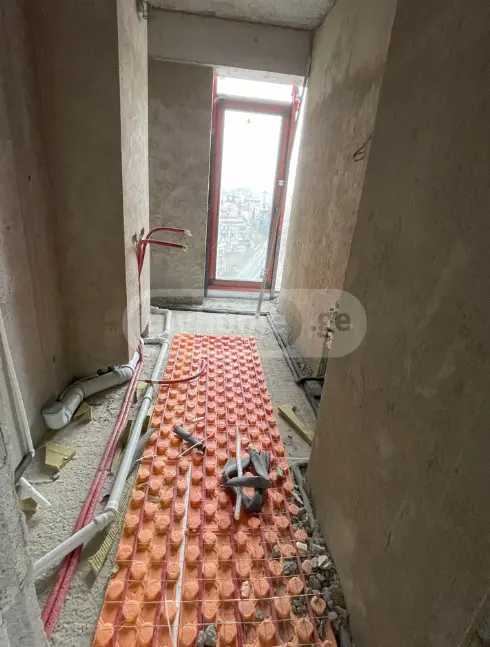 იატაკის მოჭიმვა, გალესილი კედლები, შეკიდული თაბაშირმუყაოს ჭერი.