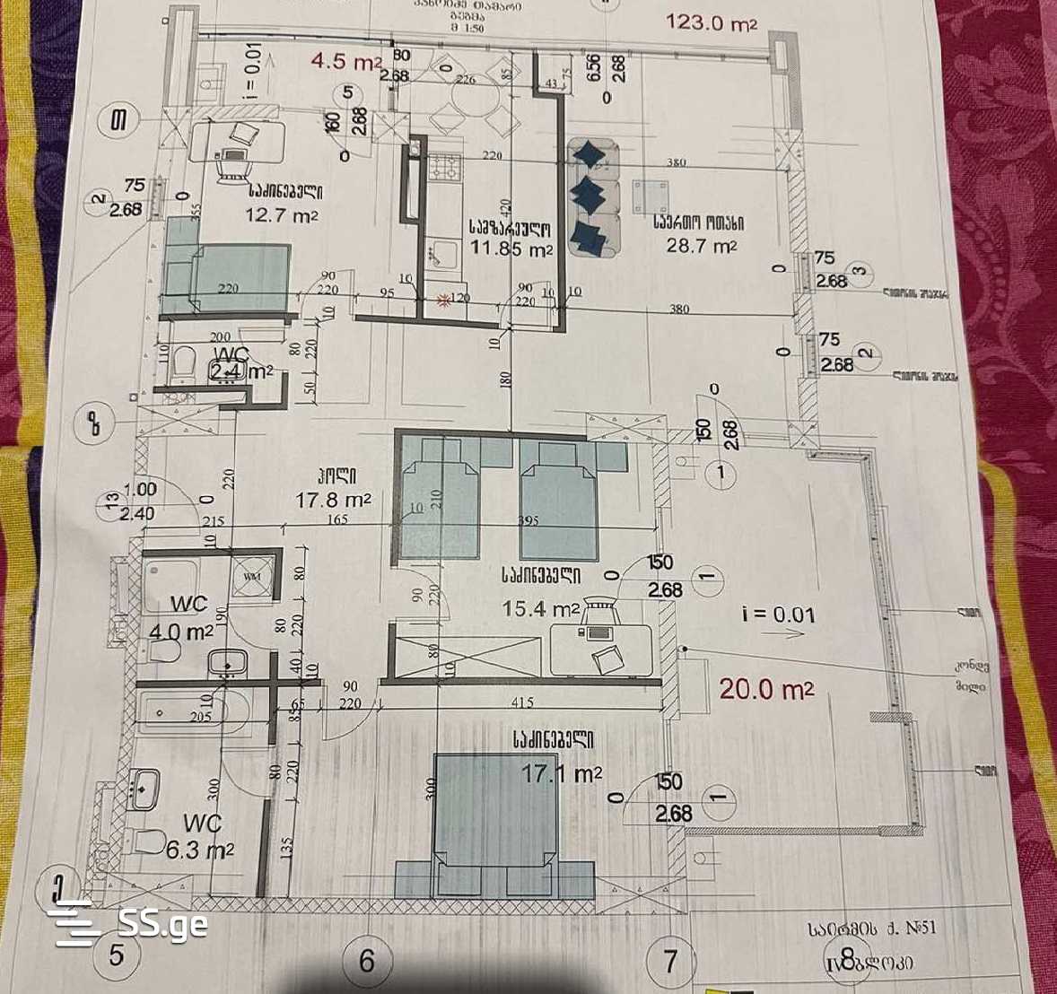 148 კვ.მ. ფართი თეთრი კარკასის კონდიციით. ბინა არის კუთხის, აქვს მისაღები, იზოლირებული სამზარეულო, 3 საძინებელი, აქედან ერთი მასტერბედრუმი და 2 სველი წერტილი. ყველა ოთახი გადის აივანზე.123კვ.მ. საცხოვრებელი სივრცით.