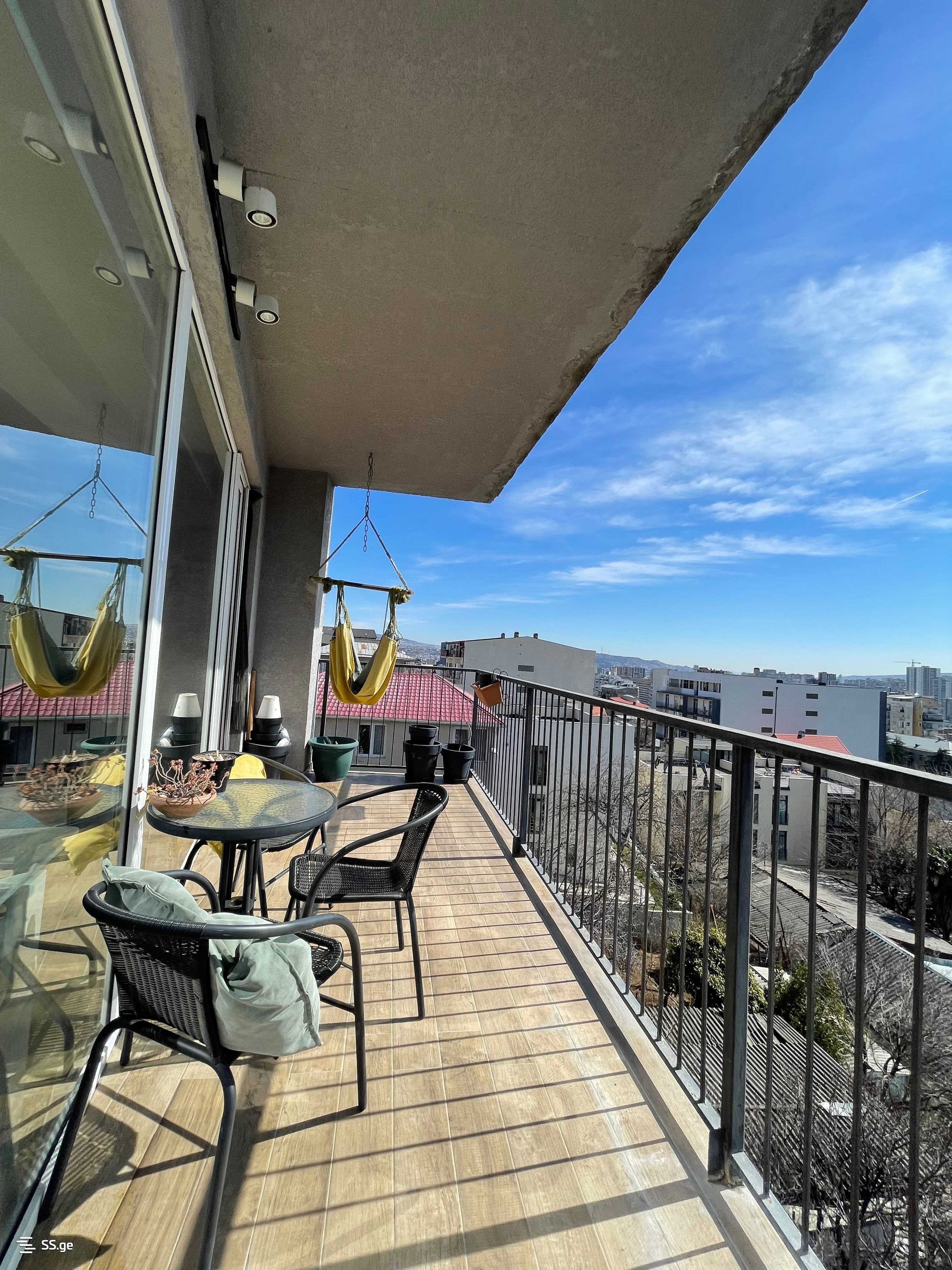 იყიდება 4 ოთახიანი ნათელი ბინა ახალაშენებულ კორპუსში საბურთალოზე. საერთო ფართი 97.3 კვ.მ. აქვს სამი საძინებელი და 2 აივანი.(ალუმინის ვიტრაჟები/კარფანჯარა) ბინა არის გარემონტებული, კეთილმოწყიბილი, ჩაშენებული კარადებით. აღჭურვილია ავეჯით, ტექნიკით, ცენტრალური გათბობით. მდებარეობს ქუჩიდან მოშორებით და აქვს ულამაზესი ხედი ქალაქზე. მდებარეობს მეტრო დელისიდან 5 წუთის სავალ გზაზე. კორპუსს ბოლო სართულზე აქვს საერთო სარგებლობის ვერანდა