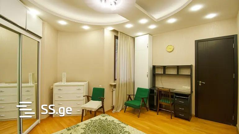 სასწრაფოდ, იყიდება 4 ოთახიანი სამსაძინებლიანი ბინა საბურთალოს ცენტრში მეტრო დელისიდან 5 წუთის ფეხის სავალზე, ბინაში არის 3 საძინებელი, მისაღები, სასადილო, გარდერობი ოთახი, ორი აივანი და ორი საპირფარეშო, კარგი რემონტით.ბინაში არის: ცენტრალური გათბობა (იატაკიკედლები რადიატორები), ცხელი წყალი, კონდენციონერი.იატაკი გაწყობილია ბუნებრივი ხის პარკეტითა და ბუნებრივი მარმარილოთი.სამზარეულო: კედლები, სტალიჩნიცები, იატაკი და სასადილო მაგიდა არის ბუნებრივი მარმარილოსი.სამზარეულოს ავეჯი აკრილი.ბუხარი მოწყობილია ბუნებრივი გრანიტით.კარფანჯრები: შიდა სამმაგი მ/პ შიდა მდფ .სველი წერტილები და აივნები მოპირკეთებულია კერამო გრანიტით.ეზო დახურული შლანგბაუმით და საერთო ავტოსადგომით.სადარბაზო დახურულია დამაფონით და აღჭურვილია ლიფტით.შესაძლებელია გაცვლა ნაკლებ ფართიან ბინაზე.
