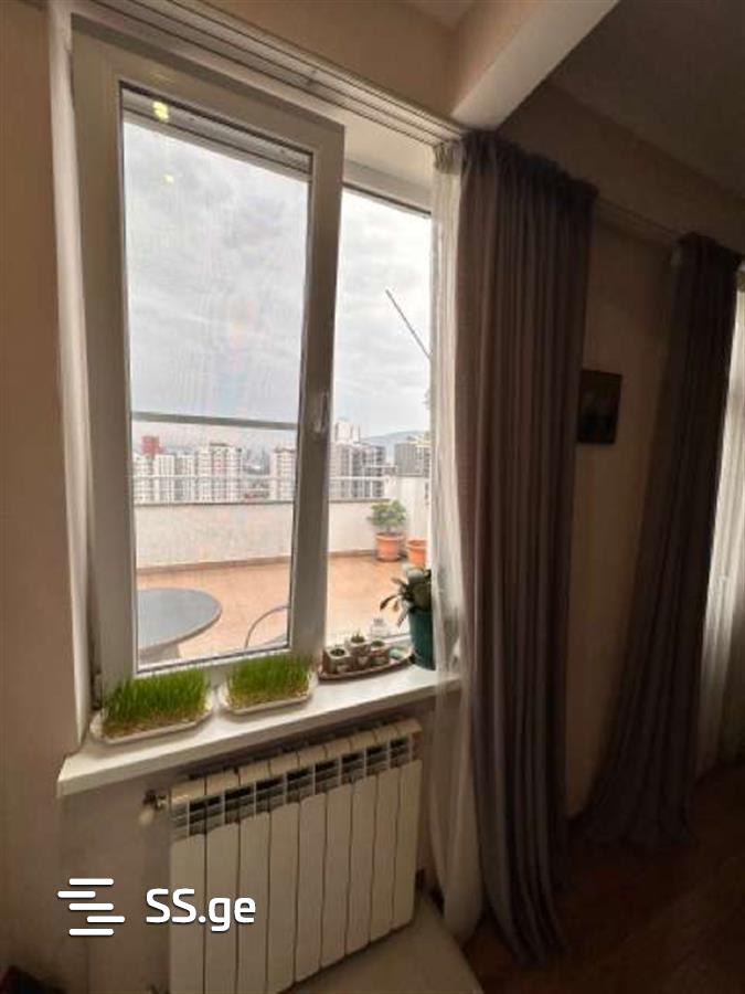 იყიდება 127 კვ.მ-ი ნათელი, გამჭოლი ბინა, 25 კვ.მ ვერანდით ბოლო სართულზე და ორი სველი წერტილით. ბინა არის ახალი რემონტით, სადაც რჩევა ავეჯი და ტექნიკის ნაწილი.