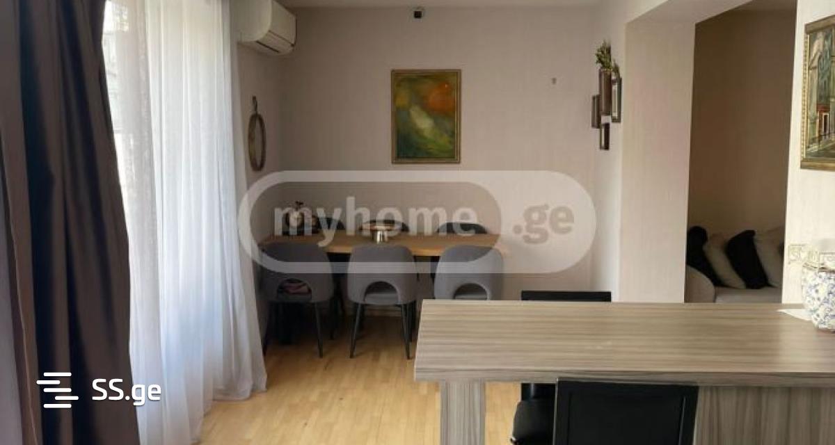 იყიდება ნათელი, გამჭოლი და მყარად ნაშენი გარემონტებული ბინა, მტკვარზე ხედით. ბინას აქვს სტუდიოს ტიპის მისაღები და სამზარეულო, ერთი საპირფარეშო და სამი იზოლირებული ოთახი, აქედან 2 საძინებელი და ერთი დამხმარე, რომელიც შესაძლებელია გამოყენებულ იქნას, როგორც საძინებლის, ისევე კაბინეტის ფუნქციით. ბინას ორივე მხრიდან (მდ. მტკვარი და ეზოს მხარე) აქვს აივანი, მათგან ერთი სათავსოთი. ბინაში გამოყენებულია ხის პარკეტი, აღჭურვილია ცენტრალური გათბობისა და კონდიცირების სისტემით. სურვილის შემთხვევაში, დამატებით შესაძლებელია დარჩეს სარეცხი მანქანა, მაცივარი, “BOSE”ს სახლის კონოთეატრი, გახმოვანების სისტემით და ავეჯის ნაწილი. კორპუსს ესაზღვრება 2 სპორტული მოედანი და კეთილმოწყობილი, გამწვანებული პარკი.