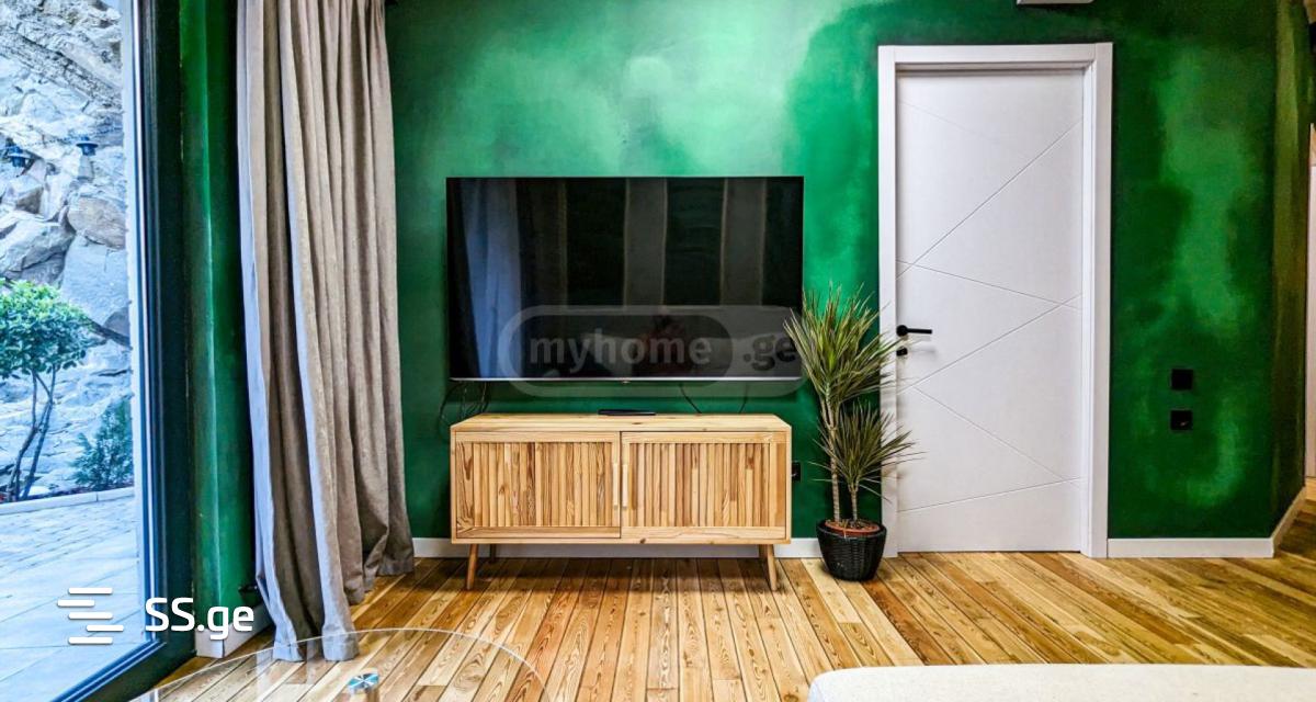ბინა მდებარეობს ალექსანდრე იოსელინის ქუჩაზე პოლიტკოვსკაის ქუჩის ბოლოს, წყნარ და მშვიდ ადგილას, ახალაშენებული, ხუთსართულიანი სახლის პირველ სართულზე იზოლირებული და მყუდრო ეზოთი. ბინა მოწყობილია ეკოლოგიურად სუფთა მასალებით, გამოყენებულია ბუნებრივი ხე და ქვა. სრული ფართი შეადგენს 100 კვ.მ. სახლის შიდა ფართი 59.2 კვ.მია, ეზოს ფართი 40.8 კვ.მ. ბინაში რჩება ავეჯი:1. იზოლირებული სამზარეულო ნატურალური ხისგან აწყობილი ფურნიტურა, ჩაშენებული გაზქურა,გამწოვი და ჭურჭლის სარეცხი მანქანა + მაცივარი;2. მისაღები, საერთო ოთახი კომფორტერის გასაშლელი დივანი, ხის მაგიდა სკამები, 4K გამოსახულების 75D ტელევიზორი + ხის ტუმბო;3. 2 საძინებელი საბავშვო და ორსაწოლიანი ლოგინი ხის კომბინირებული კომოდით4. სანკვანძი, აბაზანა ჩაშენებული უნიტაზი, ცალკე მდგომი ვანა+მინის საშხაპე კაბინა, ნატ. ხის ფურნიტურა და სარეცხი მანქანა.5. ეზო მოპირკეთებული დეკ. ფილებით, გარე ავეჯი, გამწვანება, საქვაბე კაბინა.
