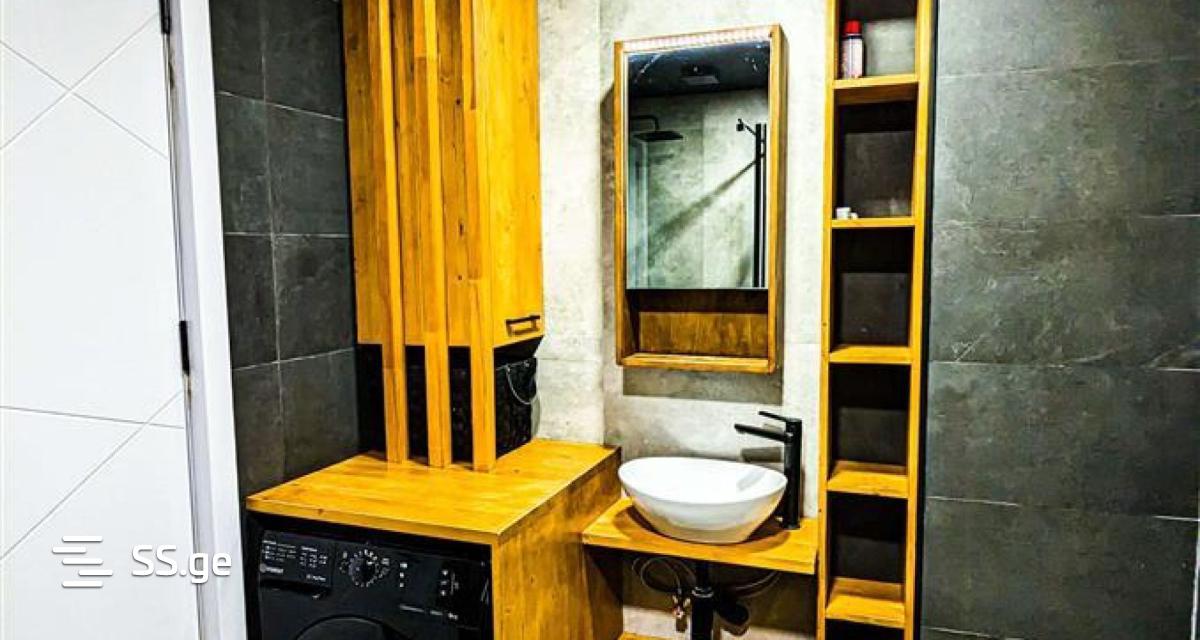 სასწრაფოდ!!! იყიდება ეკოლოგიურად სუფთა მასალებით გარემონტებული ბინა კარკასის ფასად. ბინა მდებარეობს ალექსანდრე იოსელინის ქუჩაზე, პოლიტკოვსკაის ქუჩის ბოლოს, წყნარ და მშვიდ ადგილას, ახალაშენებული, ხუთსართულიანი სახლის პირველ სართულზე იზოლირებული და მყუდრო ეზოთი. ბინა მოწყობილია ეკოლოგიურად სუფთა მასალებით, გამოყენებულია ბუნებრივი ხე და ქვა. სრული ფართი შეადგენს 100 კვ.მ. სახლის შიდა ფართი 59.2 კვ.მია, ეზოს ფართი 40.8 კვ.მ. ბინაში რჩება ავეჯი: 1. იზოლირებული სამზარეულო ნატურალური ხისგან აწყობილი ფურნიტურა, ჩაშენებული გაზქურა, გამწოვი და ჭურჭლის სარეცხი მანქანა + მაცივარი; 2. მისაღები, საერთო ოთახი კომფორტერის გასაშლელი დივანი, ხის მაგიდა სკამები, 4K გამოსახულების 75D ტელევიზორი + ხის ტუმბო; 3. 2 საძინებელი საბავშვო და ორსაწოლიანი ლოგინი ხის კომბინირებული კომოდით 4. სანკვანძი, აბაზანა ჩაშენებული უნიტაზი, ცალკე მდგომი ვანა+მინის საშხაპე კაბინა, ნატ. ხის ფურნიტურა და სარეცხი მანქანა. 5. ეზო მოპირკეთებული დეკ. ფილებით, გარე ავეჯი, გამწვანება, საქვაბე კაბინა.