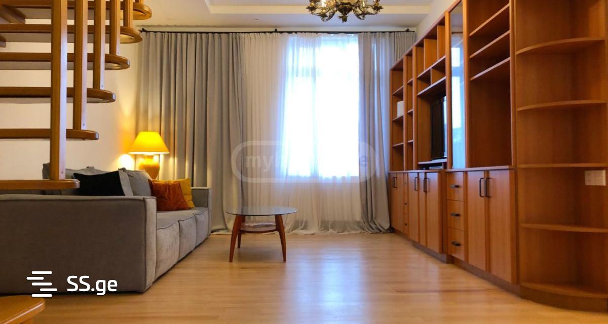 სასწრაფოდ! იყიდება 115კვმ დუპლექსის ტიპის ბინა ვაკის პარკის წინ ფალიაშვილზე, მე5/5 სართული (სტალინის დროს აშენებული ულივტო სახლი). ბინა არის ავეჯით, კეთილმოწყობილი, სუფთა, 17 კვმ ვერანდით, 9კვმ აბაზანით. საძინებლის და დიდი ოთახის ფანჯრები იყურება ვაკის პარკის მხარეს.