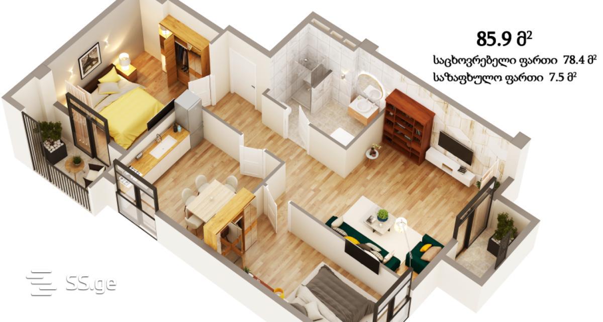 85.9 მ²ოთახი