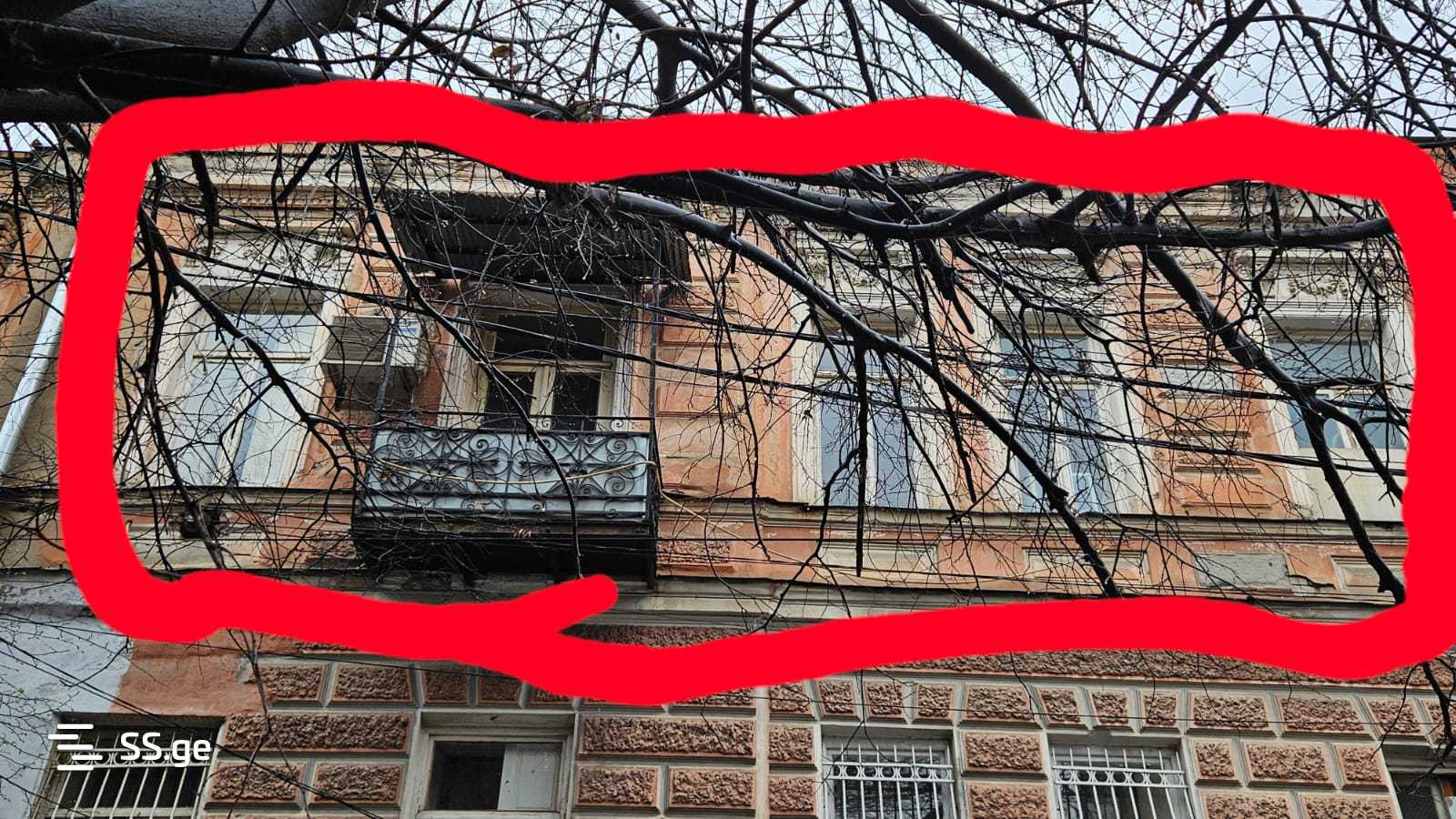 "იყიდება ძველი აშენებული 4,25 მეტრიანი, მაღალჭერიანი ნათელი, გამჭოლი ბინა, ქალაქის პრესტიჟულ - ცენტრალურ ადგილას. აქვს 2 ბუხარი ერთი მისაღებში, მეორე საძინებელში; აქვს 2 დიდი ლოჯი, 1 აივანი. ხედები მთაწმინდაზე ეზოს მხრიდან, მეორე ხედი ქუჩაზე.