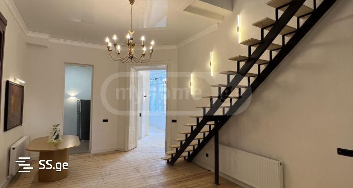 პლეხანოვზე, ახალ თეატრთან, ტოვსტონოგოვის ქუჩა, კულტურული მემკვიდრეობის ძეგლი, ძალიან მყარი კორპუსი. ესაზღვრება კახიძის პარკს. ახალი თეატრის გვერძე ქუჩა. 95 კვ + 40 კვ გარემონტებული სხვენი, გაკეთებული სველი წერტილით. მისაღებიდან ასასვლელით. სულ 3 სველი წერტილი.