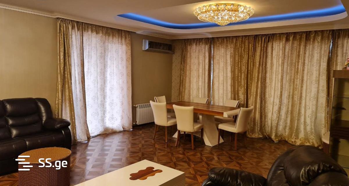 მე-8 სართული 9 სართულიანი კორპუსის. 320 მ2. მაღალი ხარისხის ავეჯი და ტექნიკა რჩება ბინის ახალ მფლობელთან. სახლს ძალიან მოსახერხებელი მდებარეობა აქვს. ახლოს არის ბევრი მაღაზია, კარპური, mcdonalds, პიცერია, სპორტული დარბაზი და სხვა. ქალაქის ცენტრამდე 5 წუთი. აეროპორტამდე 15 წუთი. აივნები ყველა საძინებელში. ჩინებული ნათელი ბინაა. ბრწყინვალე და კომპეტენტური რემონტით ორი ტუალეტით და ოთხი საძინებლით დიდი შესასვლელით, ცალკე სასადილო ოთახით და ახალი სამზარეულოთი. დიდი აივანი, სადაც შეგიძლიათ მოაწყოთ მწვადი და შეგიძლიათ მოათავსოთ აუზი. მთელი ქალაქის კარგი პანორამით.