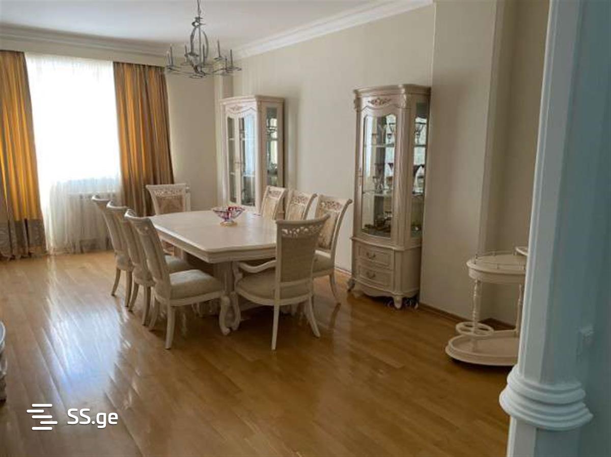 ბინა არის საუკეთესო მდგომარეობაში, უმაღლესი ხარისხის რემონტით, ავეჯითა და ტექნიკით. იყიდება სრული ავეჯითა და სრული ტექნიკით. დიდი ჰოლი, 3 საძინებელი, კაბინეტი, მისაღები, სასადილო, სამზარეულო, 2 სველი წერტილი, ცალკე სარეცხის ოთახი, სათავსო. ყველა ოთახიდან გასასვლელი აივნებზე. აივნები სრულად დაცულია გისოსებით. სადარბაზოს აქვს 2 ლიფტი (სამგზავრო, სატვირთო).