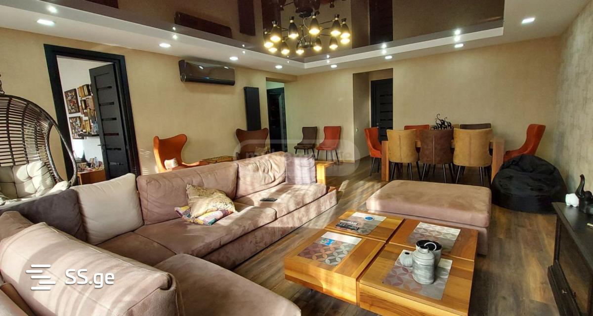 იყიდება ჩეხური პროექტის ბინა, პეკინის ქუჩაზე 5/9 სართულზე, 120 კვ. 2 აივნით, დაცული ეზოთი და მანქანის საპარკინგე ადგილით. ბინაში არის 5 ოთახი+1 ტექნიკური ოთახი+სათავსო. 3 საძინებელი, 1 მისაღები, 1 კაბინეტი, 1 სველი წერტილი, ცალკე სამზარეულო, ყველა ოთახს აქვს პირველადი განათება. სახლში გაკეთბულია ძვირადღირებული რემონტი, აღჭურვილია სამსუნგის და სონის ტელევიზორებით და სამზარეულო ბოშის ჩასაშენებელი ტექნიკით (სრული კომპლექტი), ინტერნეტით. შავი ალუმინის, სამ კამერიანი, საუკეთსო ხმის და თბო იზოლაციის მქონე კარფანჯრით, ფონდიტალის გათბობის სისტემით და მიდეას ინვენტორული კონდენციონერით. სამსუნგის 8 კგ. სარეცხის მანქანით, რომელსაც ასევე აქვს საშრობის პროგრამაც. პეკინის მხარეს ფანჯრებს აქვს ელექტრო ჟალუზები და აივანს დიოს ტენტი. ბინაში ძირითადი ავეჯი ვერონას და ლაბორატორია ჩემი სახლიდანაა. მეორე აივანი გადის 161 სკოლის სტადიონების მხარეს. კორპუსი მყარია და დაცულია რომელიმე მხრიდან ახალი კორპუსის აშენების საშიშროებისაგან.