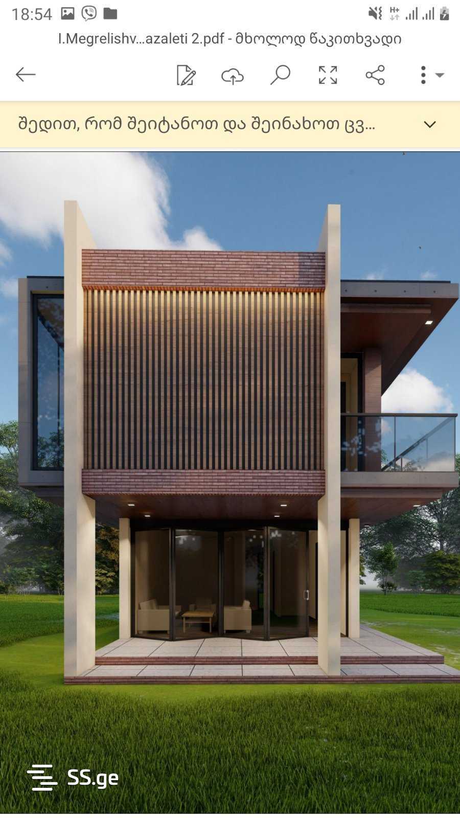 საცხოვრებელი ფართი 180კვ , ვერანდა 100 კვ, ჩაბარდება მწვანე კარკასი, კომუნიკაციებით, ძირითადი ნაწილი იქნება ვიტრაჟული ( მუქი შეფერილობით) ბიო ტვალეტით, პირველ სართულზე სტუდიოს ტიპის მისაღები სამზარეულო და სვ.წერტილი, მეორე სართულზე 3 საძინებელი და სვ.წერტილი