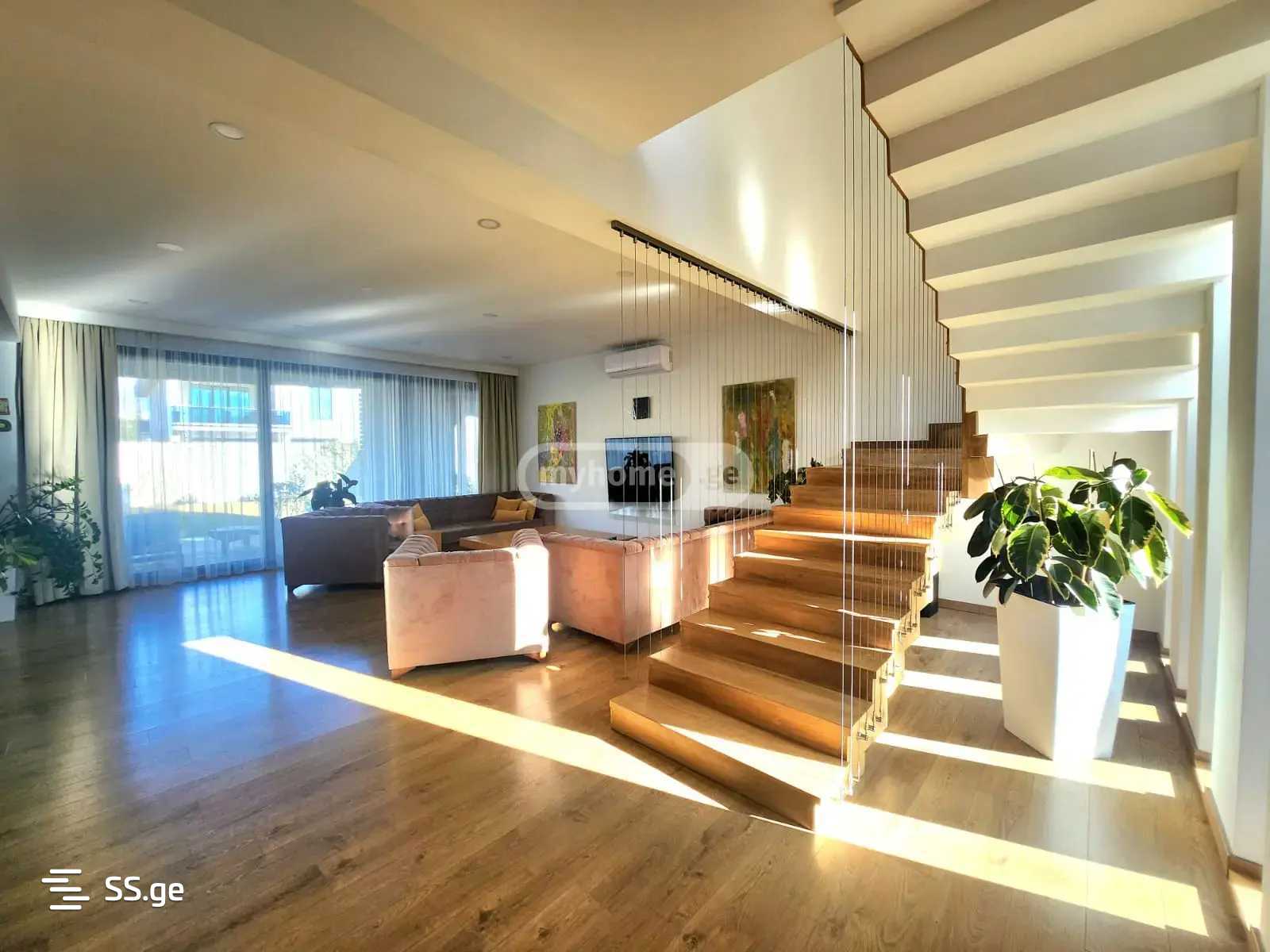 სახლში დამონტაჟებულია უმაღლესი ხარისხის ალუმინის ვიტრაჟები და ფანჯრები, სამმაგი მინაპაკეტით