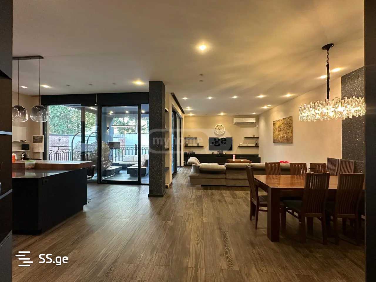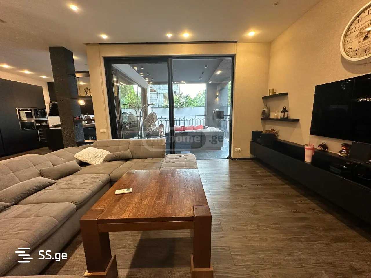 მეორე სართულზე: დიდი ჰოლი მისაღები სივრცით, 3 საძინებელი სამივე მასტერბედრუმი, დიდი გარდერობებითა და სველი წერტილებით, ყველას აქვს თავისი აივანი. სახლი არის კარგად გარემონტებული, მაღალი ხარისხის მასალებით ნაშენები. იატაკის გათბობა, კონდენცირება. გამოყენებულია ვინილის იატაკები, Villeroy & Boch, TEKA. შავი ალუმინის ვიტრაჟებით. ეზოს საერთო ფართობი: 590 კვ.მ. შემოღობილი ბლოკის გალავნით, რკინის პულტირებული ჭიშკრით. ქვაფენილი დაგებული, გამწვანება დეკორატიული ხე-მცენარეები, საპარკინგე ნახევრად დახურული ტიპის 2 ავტომანქანაზე და წინ კიდევ ეზოში დგება 1 მანქანა. ეზო გაყოფილია წინ და უკან, 300 მ2-მდე თავისუფალი ეზო. აქვს აუზის ადგილიც.