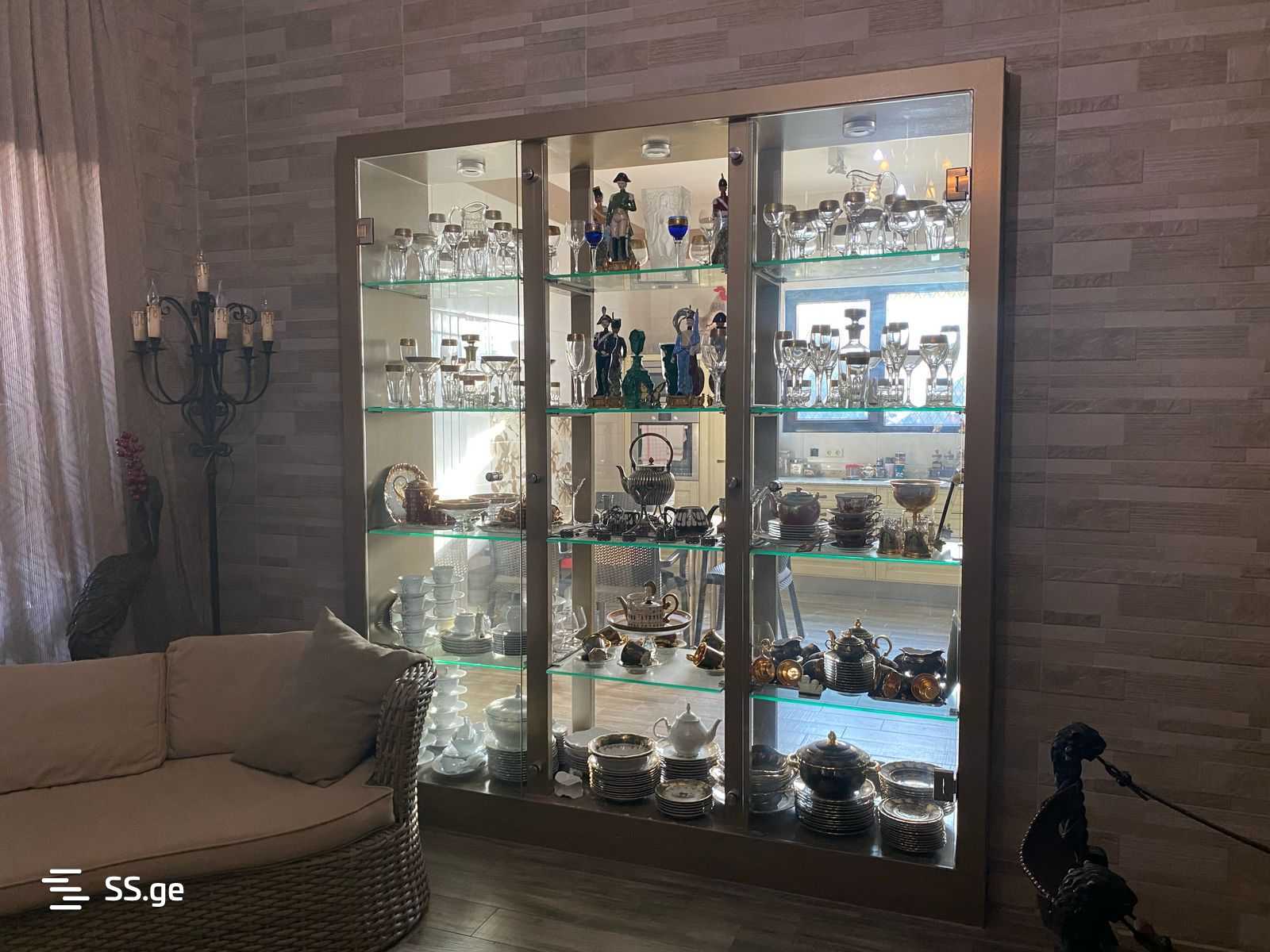 🔸️ერთ-ერთი ასეთი კარადა არის ორიგინალური მინის ვიტრინა - კედელი (ზომა სიმაღლე - 3 მეტრი, სიგრძე - 2.8 მეტრი) საზეიმო ჭურჭლისა და ვერცხლისთვის.