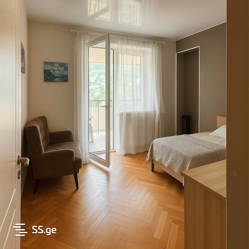 მესამე სართული-მაღალი მანსარდა - ჰოლი, 3 საძინებელი (ორს აქვს გარდერობის სივრცეები), აივანი, სველი წერტილი.