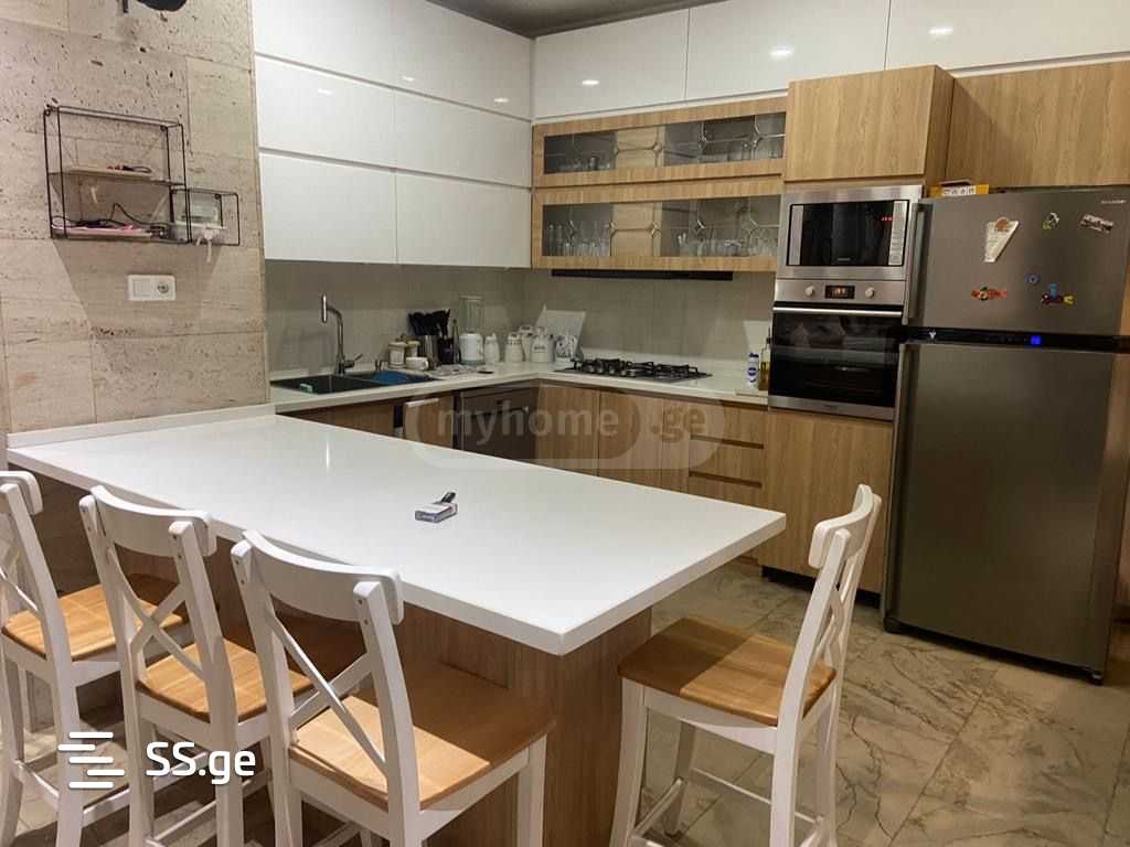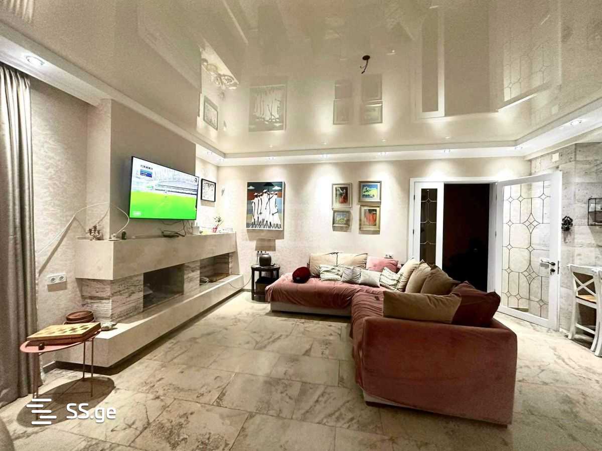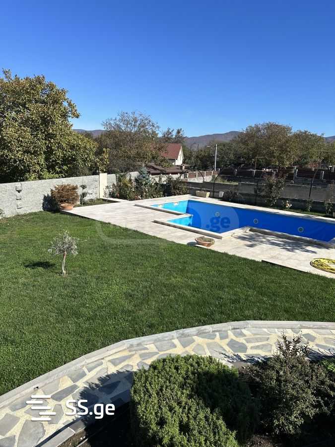 სამსართულიანი სახლი. საცცოვრებელო ფართი 560კვ, პირველი სართულის ტერასა 80კვ, მეორე სართულის აივანი 17კვმ, მესამე24. ყველა საყოფაცხოვრებო პირობით: ცენტრალური გათბობა, პიტველი სართული იატაკქვეშა გათბობა, ავეჯით, ტექნიკით( ჭურჭლის სარეცხი მანქანა, სარეცხის მანქანა). 5 საძინებელი, ერთი მასტერბედრუმი. 4 სველი წერტილი. სარდაფი სტელაჟებით. დაცვის სისტემა, ეზოში კამერები. აუზით, მოწესრიგებული და გალამაზებული 1300 კვმ ეზოთი. ეზოში სარწყავი სისტემა.მესამე სართული გარრმონტებულოა, მაგრამ ავეჯი არ არის გამზადებული.