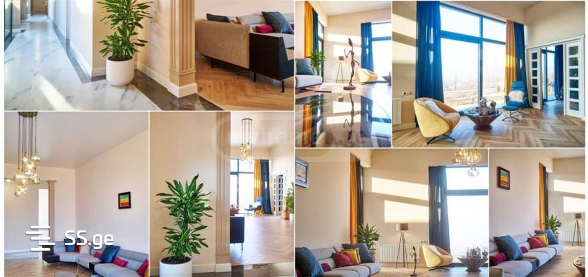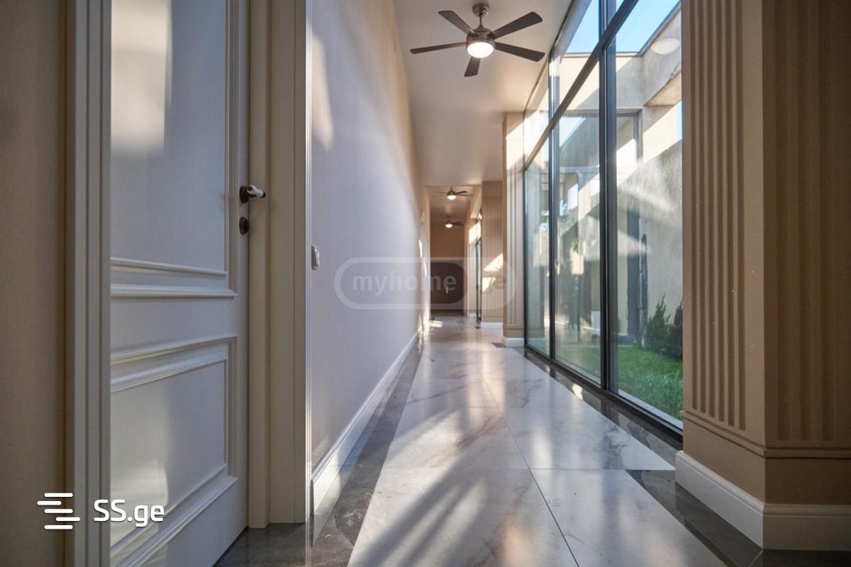 სახლი არის არაჩვეულებრივი დიზაინის, ერთ სართულიანი (350 კვ.მ, სარდაფი 70 კვ.მ) 6 ოთახით, 5 სველი წერტილით და ორი ულამაზესი ღია ბაღით.
