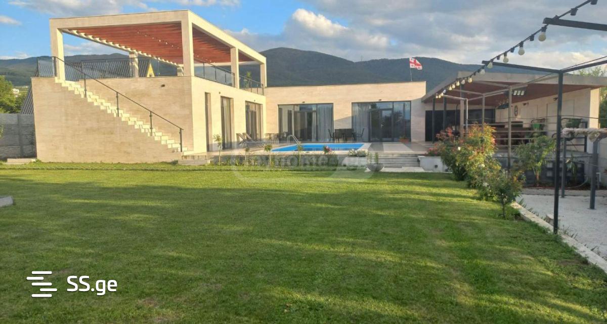 იყიდება ახალი აშენებული, ტრავერტინით მოპირკეთებული, ფეშენებელური სახლი საგურამოში საუკეთესო ლოკაციით. ( 360 გრადუსიანი ხედებით) უმაღლესი ხარისხის ვიტრაჟებითა და ენერგო ეფექტური შუშებით. მისაღები 70მ2; იზოლირებული სამზარეულო 36მ2; 4 საძინებელი; 4 სვ.წ. ( 2 მასტერ ბედრუმით) აივანი 46მ2; ტერასა 72მ2; ყველა საჭირო კომინიკაციით.აუზი 5*10 ფილტრაციით.1200მ2 დეკორატიული და ხეხილიანი ეზო