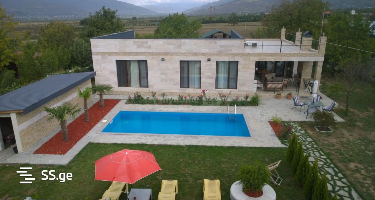 ქირავდება ძალიან კომფორტული, ტრავერტინით მოპირკეთებული სახლი საგურამოში საუკეთესო ლოკაციით. მისაღები 45მ2; იზოლირებული სამზარეულო 25მ2; 4 საძინებელი; 3 სვ.წ. აივანი 35 მ2 ბარბექიუთი. 70მ2 ტერასა.აუზი 4*9 ფილტრაციით1100მ2 დეკორატიული და ხეხილიანი ეზო.ფასი:1 წლის შემთხვევაში ფასი 2500 $
