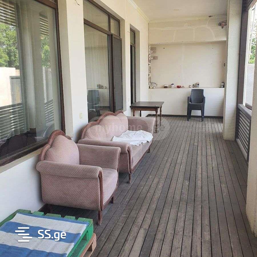 ეზო არის მოწესრიგებული, შემოღობილი, გაკეთებულია აუზი. ავტოფარეხი 2+ ავტომობილისთვის და სათავსოებით ფართი 160 მ2. იყიდება მხოლოდ ჩაშენებული ავეჯით. მიწის საერთო ფართი: 700მ².